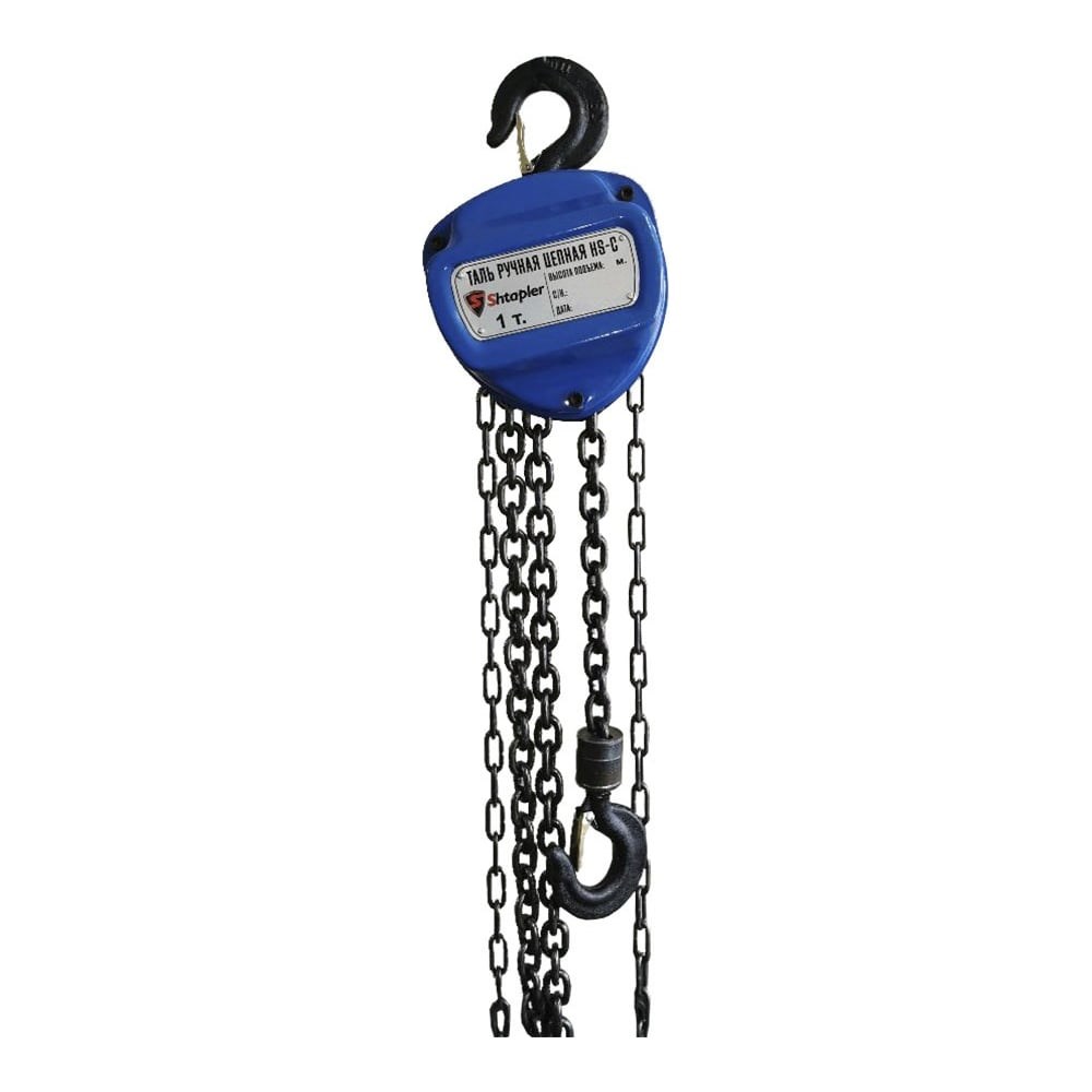 В продаже также имеются холостые и приводные тележки для талей. Рекомендуем приобретать комплект – это позволит расширить сферу применения выбранной вами тали.Shtapler HS-C – это ручная таль шестеренной конструкции, где в качестве тягового элемента используется цепь. Отличительные особенности этой модели:Вращающийся крюк, который облегчает работу с грузом в несовершенных условиях строповки.Наличие тормоза, который позволяет зафиксировать груз на определенной высоте.Возможная комплектация с передвижной тележкой.Возможно только вертикальное использование.Модель доступна в различных модификациях: грузоподъемность 0,5-50 т и высота подъема 3-18 м.