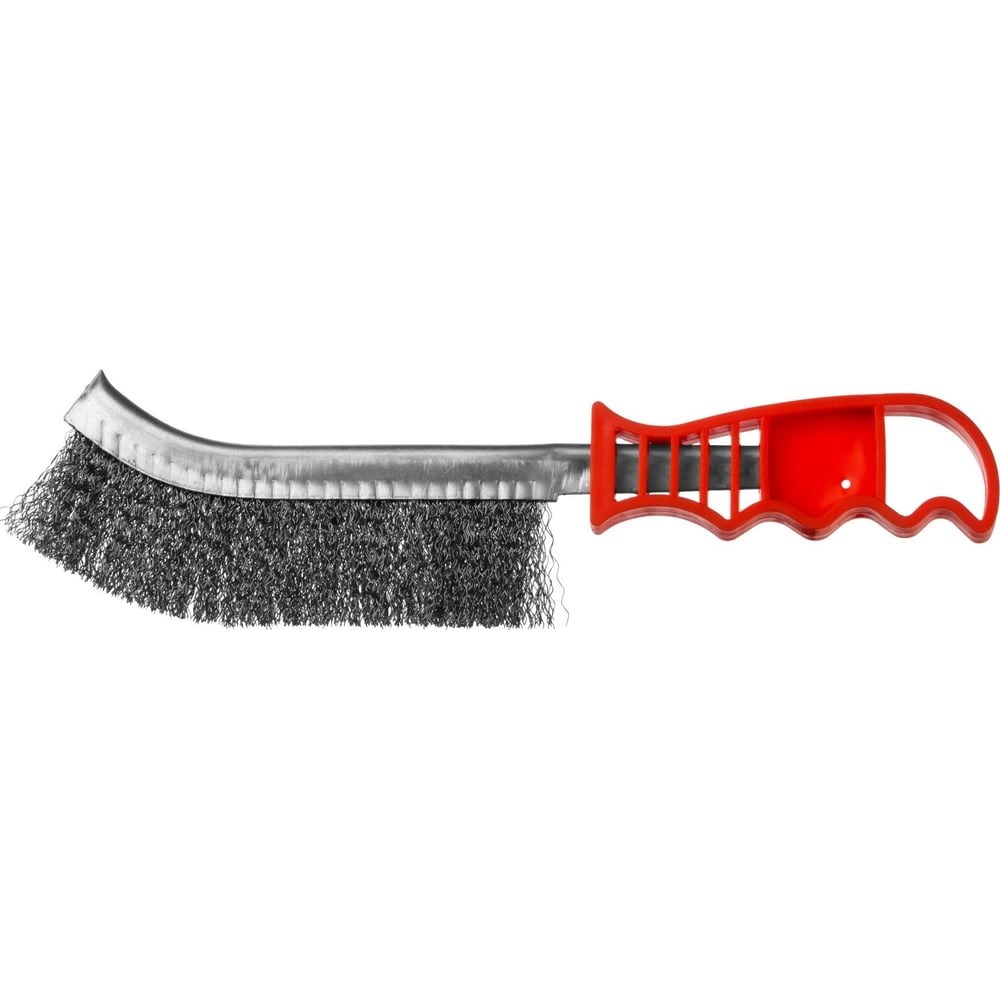 Ручная латунированная щетка MIRAX 35112-2 используется для очистки различных поверхностей от старых лакокрасочных материалов, а также от ржавчины и других видов загрязнений. Инструмент отличается надежным исполнением. Щетка оснащена пластмассовой рукояткой.