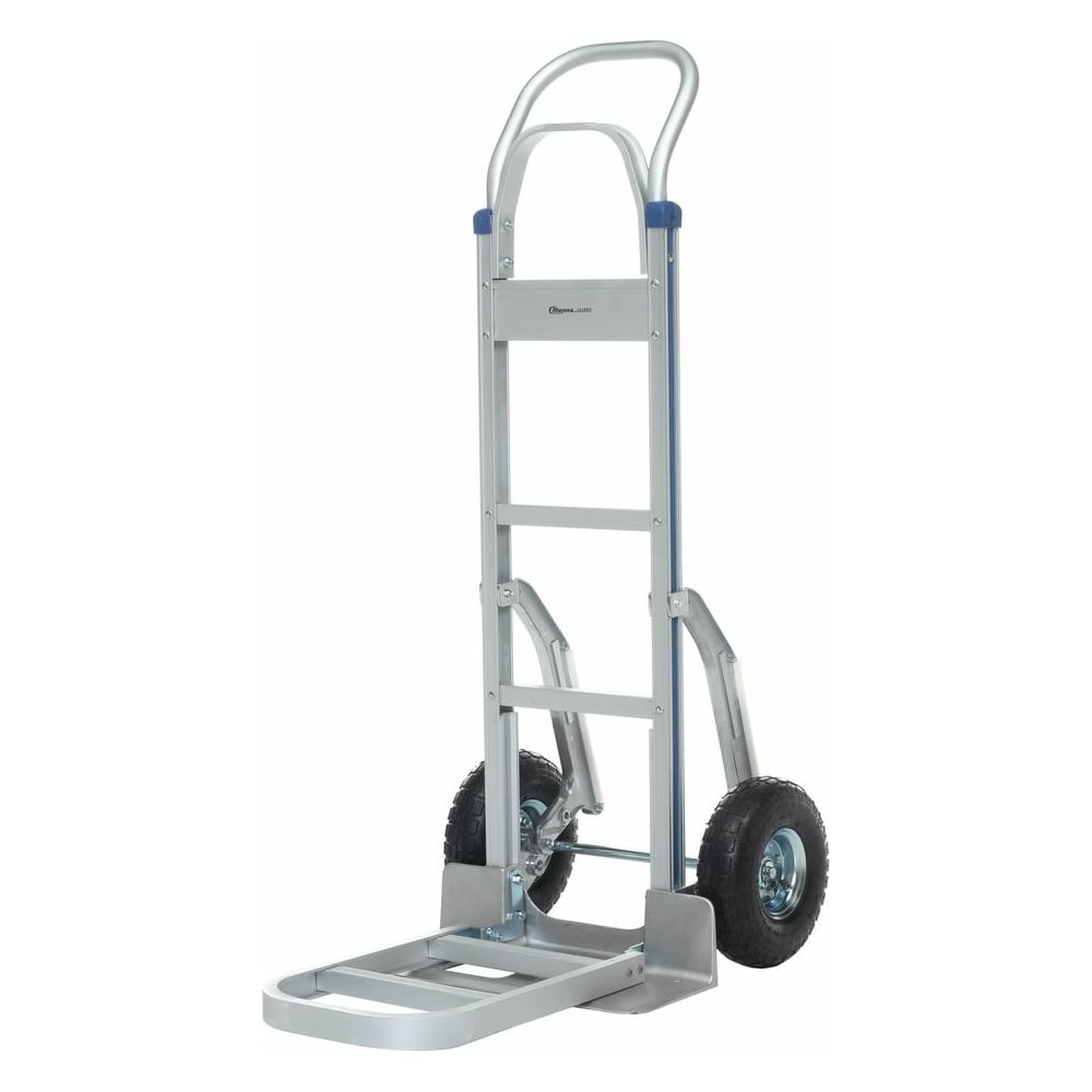 Ручная тележка с откидной полкой СТЕЛЛА-ТЕХНИК алюминий, грузоподъемность 200/250 кг FW-88А обладает следующими характеристиками: Грузоподъемность малой площадки 250 кг, откидной полки 200 кг. Тележка имеет два пневматических колеса диаметром 255 мм и откидную полку, позволяющую увеличить площадь перемещаемого груза. Благодаря пневматическим колесам тележку легко перемещать по неровным поверхностям и преодолевать препятствия. Пневматические колеса обеспечивают легкость и плавность хода. Размер малой площадки 232х457 мм. Полезный размер откидной полки 52х30,5 см (от ручки). Полная глубина откидной полки с креплением 47 см. Габариты тележки в собранном виде с малой площадкой 123х50,5х47 см, с откидной полкой 123х50,5х80,5 см. Высота ручки 123 см. Тележка поставляется в разобранном виде, в коробке размером 107х34х19,5 см, с паспортом и инструкцией по сборке.