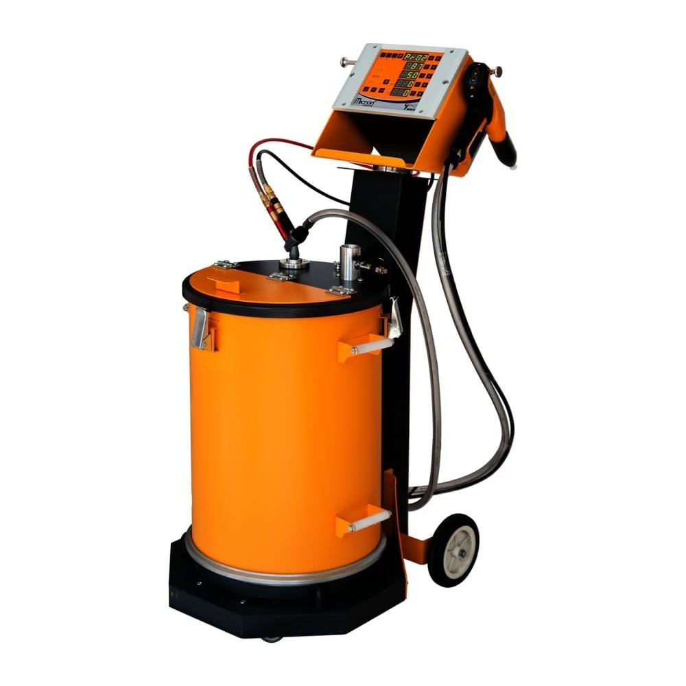 Ручная установка Micron с баком 50 л металл В-500-H50 оснащена пультом с цифровым управлением такими функциями пистолета, как: общий расход воздуха, расход краски, продувка электрода, флюидизация, установка программы нанесения порошка, а также можно задать индивидуальную программу окраски для различных изделий (в зависимости от конфигурации изделия) с целью получения необходимого качества покрытия. Окрасочный пистолет оборудован панелью дистанционного управления на корпусе, позволяющей настраивать основные функции установки. Блок управления обеспечивает конфигурацию параметров нанесения (воздух и высокое напряжение), системных параметров, данных нанесения, информации состояния и корректирующих значений. Объем воздуха контролируется централизованно. Всеми параметрами можно легко и воспроизводимо управлять. Встроенная электроника позволяет выполнять точную настройку расхода порошка, и полученные параметры отражаются на цифровых дисплеях. Блок управления обладает тремя заданными режимами нанесения. В этих режимах ток и высокое напряжение нанесения автоматически настроены и лимитированы, расход порошка и воздуха может регулироваться. Значения воздуха сохраняются отдельно для каждого режима нанесения. Также доступно 20 индивидуально настраиваемых программ.
