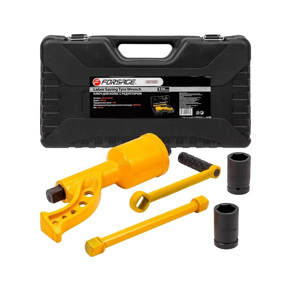 Ручной гайковерт с редуктором от бренда Forsage предназначен для откручивания различных резьбовых соединений на грузовых автомобилях, строительных сооружениях и других объектах.Этот мобильный инструмент не требует подключения компрессора или наличия розетки, что позволяет легко перевозить его и работать в любых условиях. С помощью механизма, известного как "мясорубка", можно выполнять работу, не прилагая больших усилий.Основные характеристикиПередаточное отношение: 1:78 (что означает, что на 1 кг приложенной силы увеличивается в 78 раз).Длина: 330 мм.Максимальный крутящий момент: 6800 Нм.Посадочный квадрат: 1".Размеры головок: 32 и 33 мм в комплекте.Рабочий профиль: 6 граней.Высокая мощность: Максимальный крутящий момент 6800 Нм позволяет эффективно откручивать и закручивать самые крепкие болтовые соединения. Это особенно важно при работе с тяжелой техникой и строительными конструкциями, где требуется значительное усилие.Эффективное передаточное отношение: Передаточное отношение 1:78 означает, что на 1 кг приложенной силы крутящий момент увеличивается в 78 раз. Это позволяет быстро и легко справляться с задачами, которые требуют значительных усилий, сокращая время работы и повышая производительность.Мобильность: Гайковерт не требует подключения к электросети или компрессору, что делает его идеальным для работы в условиях, где доступ к электроэнергии ограничен. Вы можете использовать его на стройплощадках, в гараже или на выезде, что значительно расширяет область применения.Удобство использования: Механизм "мясорубки" позволяет выполнять работу без значительных физических усилий. Это снижает усталость пользователя и делает процесс более комфортным, особенно при длительной работе.Компактность и удобство хранения: Гайковерт поставляется в прочном пластиковом кейсе, который обеспечивает надежную защиту инструмента от повреждений и загрязнений. Такой кейс удобен для транспортировки, что позволяет всегда иметь инструмент под рукой.Широкий спектр применения: Благодаря своей конструкции и характеристикам, гайковерт подходит для работы с различными резьбовыми соединениями, что делает его универсальным инструментом как для профессионалов, так и для домашних мастеров.Надежность и долговечность: Изготовлен из качественных материалов, что обеспечивает долговечность и надежность инструмента даже при интенсивном использовании. Это позволяет снизить затраты на обслуживание и замену.Для удобства хранения и транспортировки гайковерт поставляется в прочном пластиковом кейсе. Этот инструмент сочетает в себе мощность и удобство, что делает его незаменимым помощником в работе.