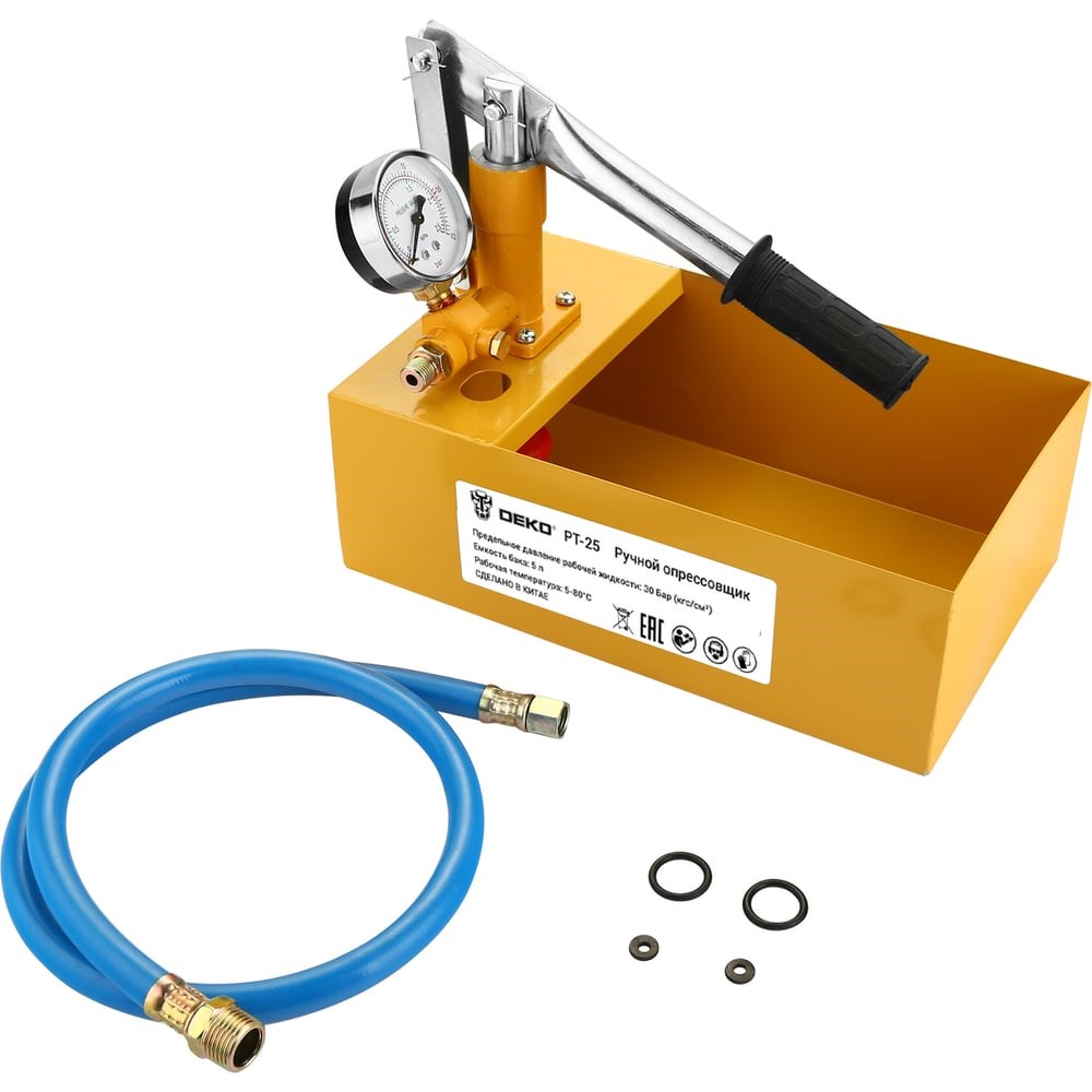 Ручной опрессовщик PT-25 предназначен для проведения гидравлических испытаний и опрессовки различных емкостей и систем трубопроводов, включая запорно-регулирующую арматуру, после выполнения монтажных и ремонтных работ. Технические характеристики: Предельное давление рабочей жидкости: 30 бар (кгс/см2) Рабочая жидкость: вода, масло минеральное Рабочая температура: 5-80оС Подача жидкости за один двойной ход рычага: 13см3/дв Емкость бака: 5 л Усилие на приводном рычаге (максимальное): 20 Н Присоединительная резьба нагнетательного трубопровода: G 1/2''