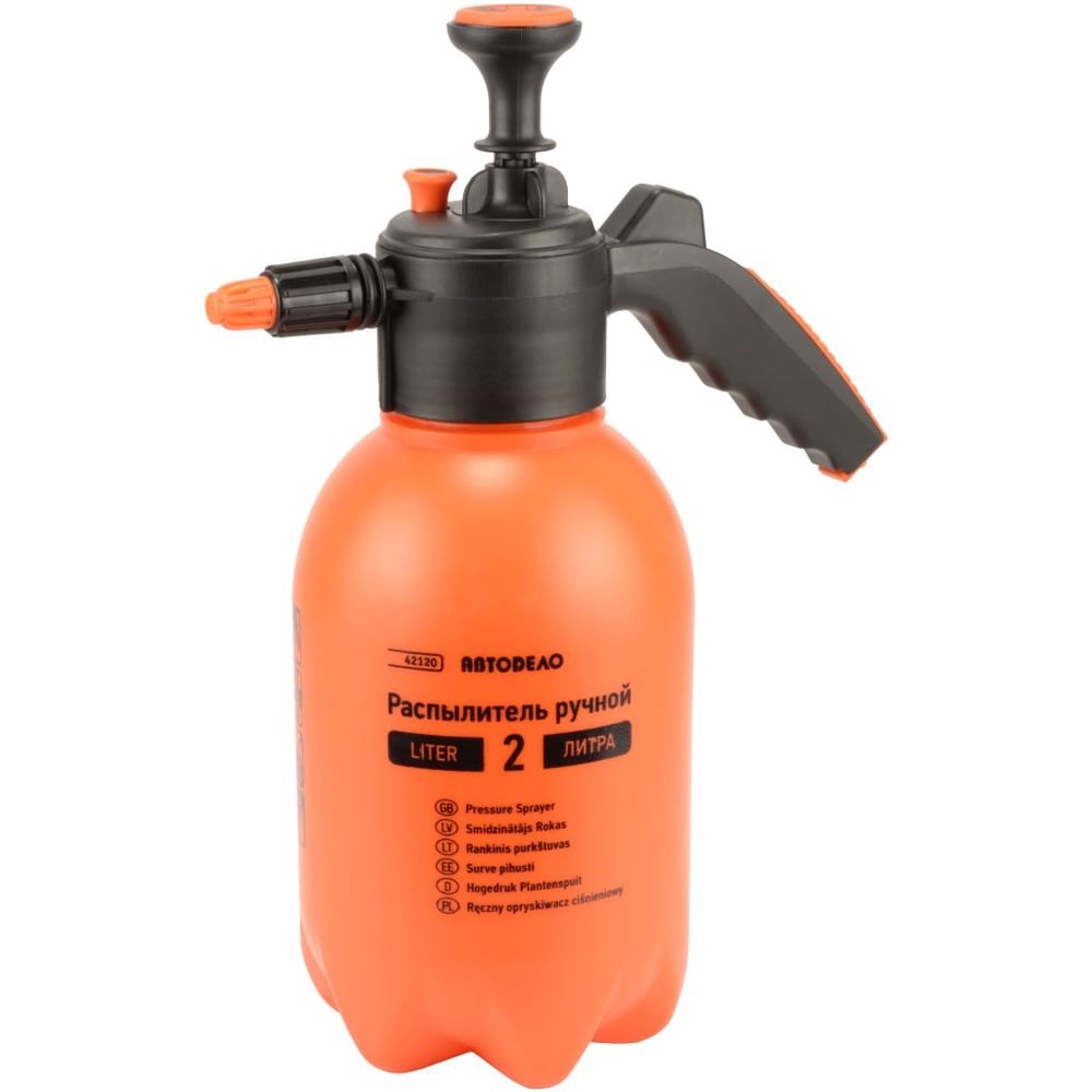 Ручной распылитель с клапаном Автоdело 2.0л 42120 16032 отлично подходит для мойки автомобиля, полива растений. Укомплектован запасной форсункой и силиконовой прокладкой. Вместимость емкости распылителя составляет 2 литра, что гарантирует длительное время распыления. Данная модель снабжена предохранительным клапаном и фиксатором положения.