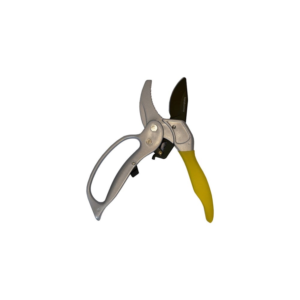 Ручной секатор с храповым механизмом Hanskonner 205 мм HK3012-07-20 используется для ухода за садовыми растениями. Храповый механизм позволяет затрачивать меньше усилий на рез, что упрощает процесс работы. Лезвия секатора изготовлены из стали марки 50 и имеют защитное тефлоновое покрытие, что обеспечивает продолжительный срок службы. Комфортная и эргономичная алюминиевая рукоятка с покрытием из TPR удобно лежит в руке. Надежный фиксатор гарантирует безопасное хранение и транспортировку инструмента.