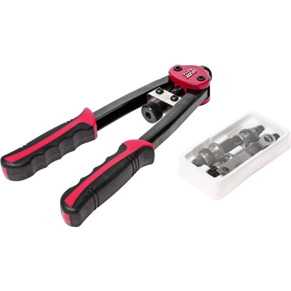 Ручной заклепочник, резьбовой, 325мм JTC-5218N - это компактный инструмент, с помощью которого можно быстро и аккуратно установить заклепки в металлоконструкцию автомобиля. Приспособление исключительно просто в использовании - для работы с ним не обязательно обладать какими-либо особыми знаниями или умениями. Заклепочник представляет из себя устройство рычажного типа, позволяющее оператору прилагать больше усилий при соединении тонкостенных профилей или листовых деталей.