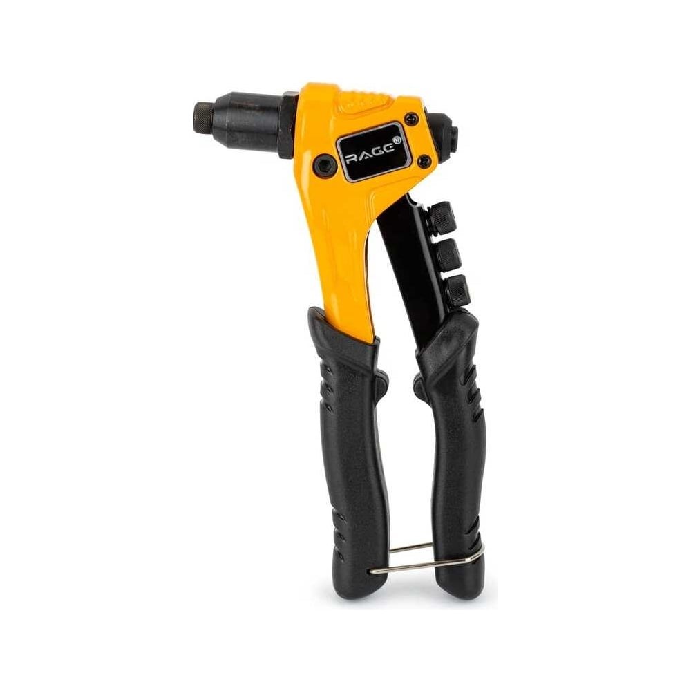 Ручной заклепочник VIRA RAGE 810207 используется для стальных и алюминиевых заклепок диамером Ø 2.4, 3.2, 4.0, 4.8 мм и не гнется за счет толстой стали корпуса. Шарнирный механизм повышает удобство и скорость работы. На инструменте имеются 3 закалённые лапки с помощью которых удерживаются заклёпки.