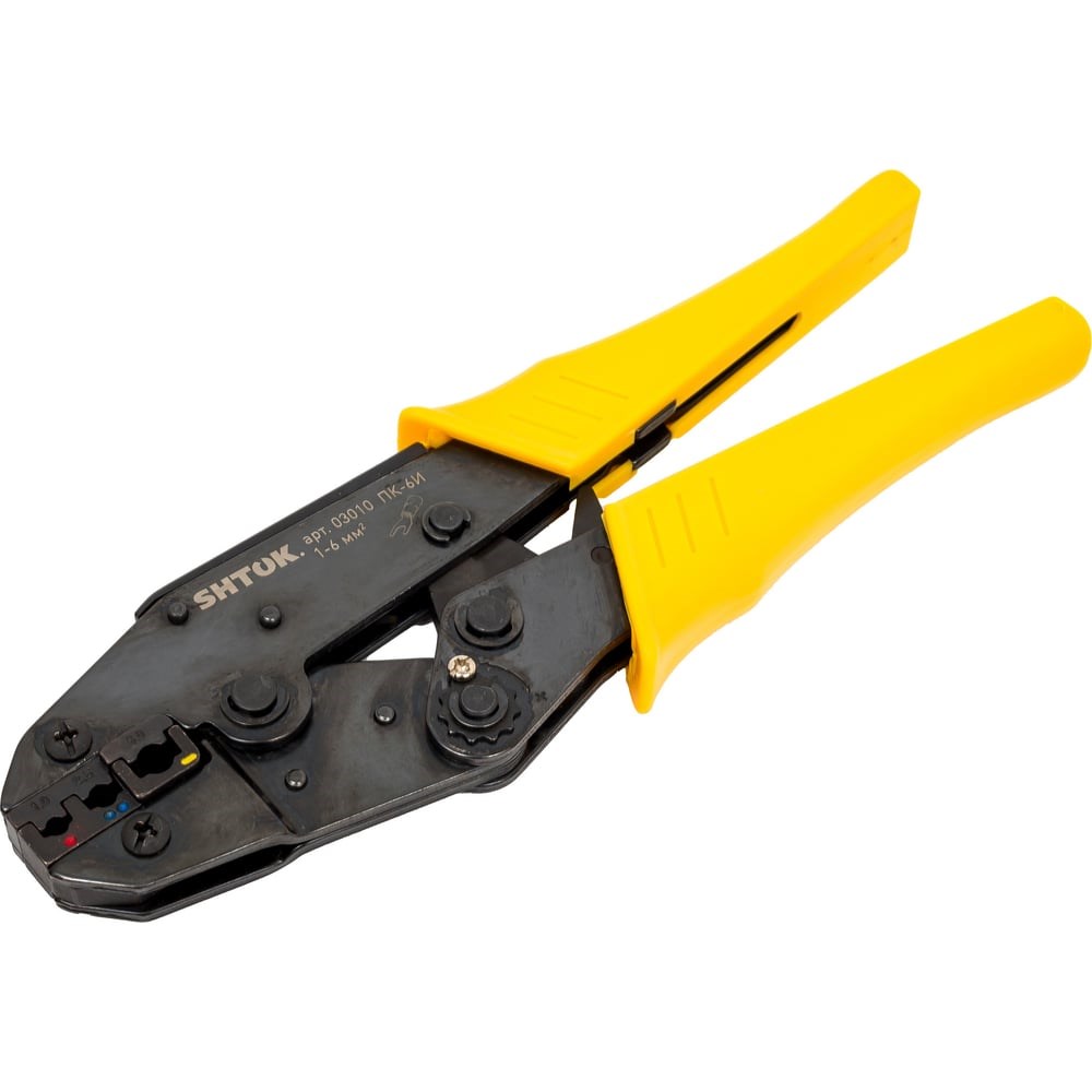 Ручные пресс-клещи SHTOK ПК-6и 03010 предназначен для опрессовки изолированных наконечников. Инструмент обладает небольшими размерами для комфортной работы и компактного хранения. Опрессовка производится одним движением. Диапазон сечений: 0,5-1,5; 1,1-2,5; 2,6-6,0 мм2. Профиль опрессовки: овал;
