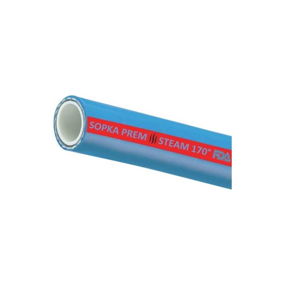 Напорный пищевой рукав для пара и горячей воды SOPKA-PREM TITAN LOCK имеет внутренний слой из гладкого белого каучука EPDM.Основной особенностью данного шланга является устойчивость к высоким температурам до +170°С и пищевой допуск.Рукав усилен высокопрочным синтетическим кордом.