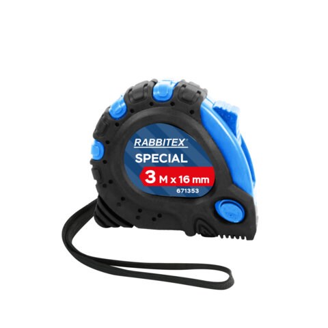 Рулетка измерительная 3 м х 16 мм, обрезиненный корпус, 3 фиксатора, RABBITEX (РАББИТЕКС) Special, 671353