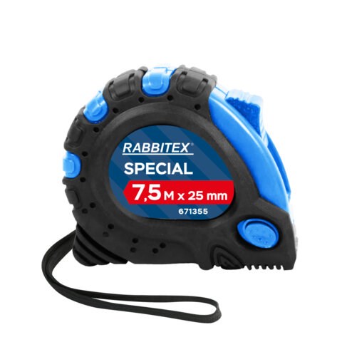 Рулетка измерительная 7,5 м х 25 мм, обрезиненный корпус, 3 фиксатора, RABBITEX (РАББИТЕКС) Special, 671355