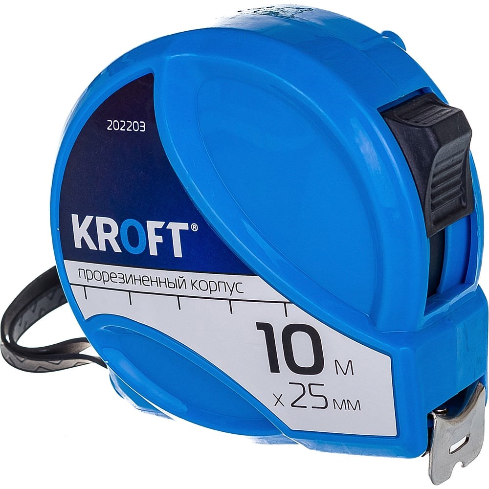 Рулетка пластиковая 10 м х 25 мм KROFT Рулетка предназначена для измерения линейных размеров. Второй класс точности имеет минимальную погрешность и обеспечивает точность измерений. Полотно ленты стальное с трехслойным защитным покрытием. Зацеп свободного конца рулетки имеет люфт, который позволяет выполнять точные замеры как от предмета, так и с его захватом. Инструмент оснащен удобным и надежным механическим фиксатором. Для удержания или сматывания ленты достаточно передвинуть кнопку фиксатора в верх или низ. Быстрый и плавный ход происходит за счет усиленной пружины в механизме. Для удобства хранения и транспортировки предусмотрены ремешок и поясная клипса. Характеристики:Длина ленты (м): 10Ширина ленты (мм): 25Класс точности: 2 классШкала: метрическаяЦвет ленты: жёлтыйМатериал ленты: сталь CSМатериал корпуса: ABS-пластикМеханизм сматывания: возвратная пружина с механическим зажимом