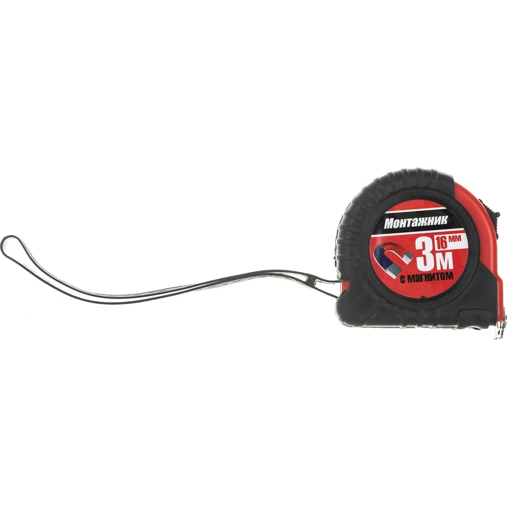 Рулетка с магнитом Монтажник 3 м х 16 мм 601316 поставляется в корпусе с элементами из эко-резины без запаха. Инструмент оснащен отверстием для зацепа на гвоздь. Есть мощная возвратная пружина. Толщина полотна всего 0.115 мм.