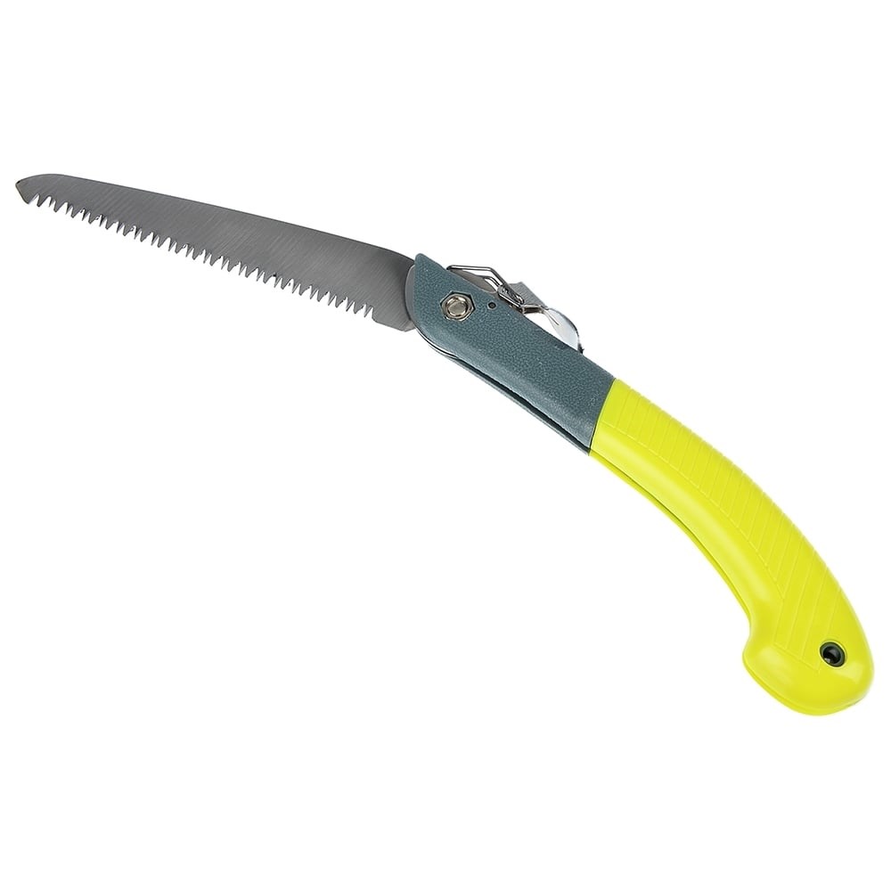 Складная садовая пила предназначена для обрезки тонких веток в саду. Острые зубья гарантируют аккуратные спилы без повреждения живой кроны. Рабочая часть инструмента изготовлена из высокопрочной стали. Пластиковая ручка обеспечивает удобное использование изделия. Также инструмент подойдет для деликатной обрезки веток на молодых деревьях.