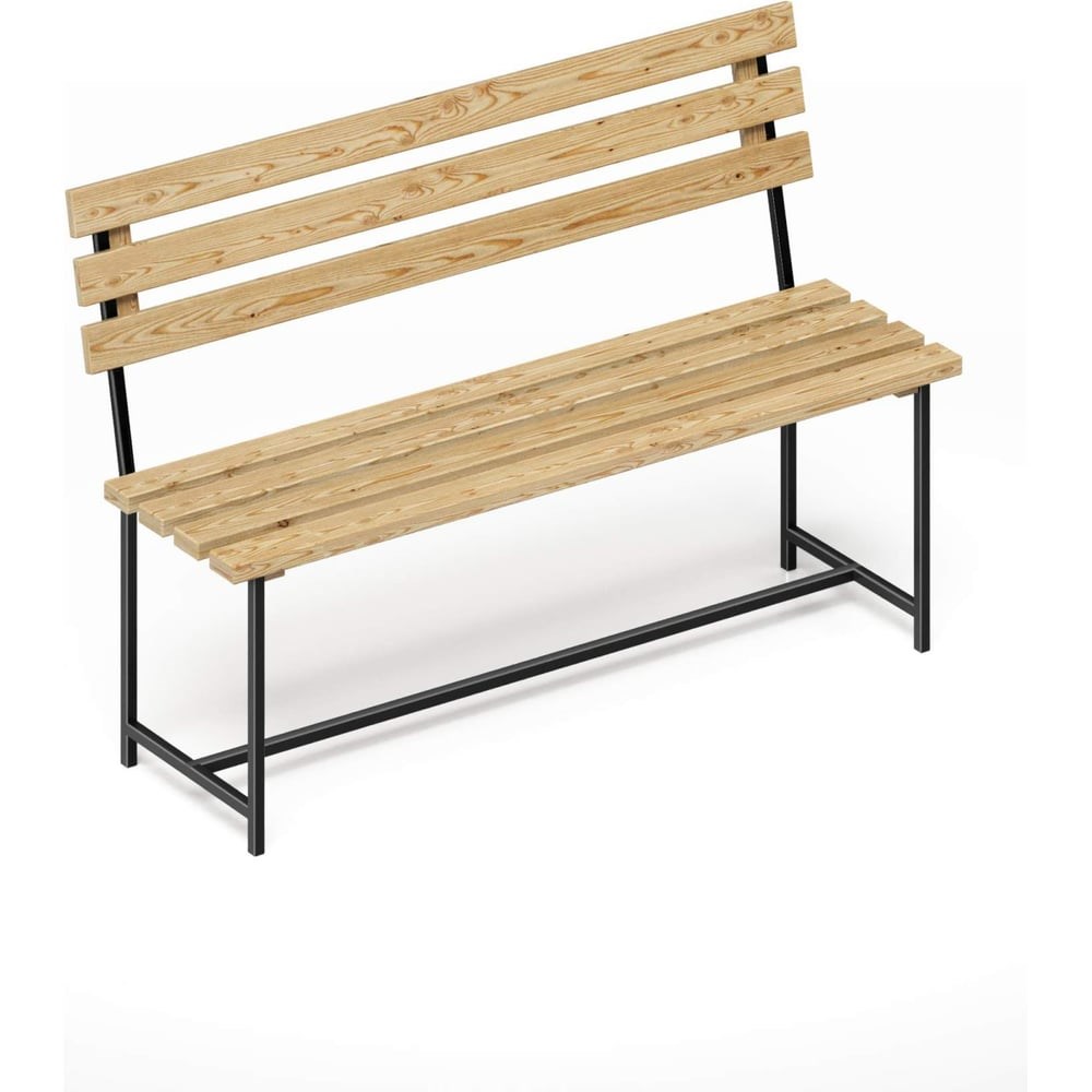 Скамейка садовая Solarius Классика с деревянными спинкой и сиденьем без покраски, лавочка для дачи с черным металлическим каркасом skam-spin-net