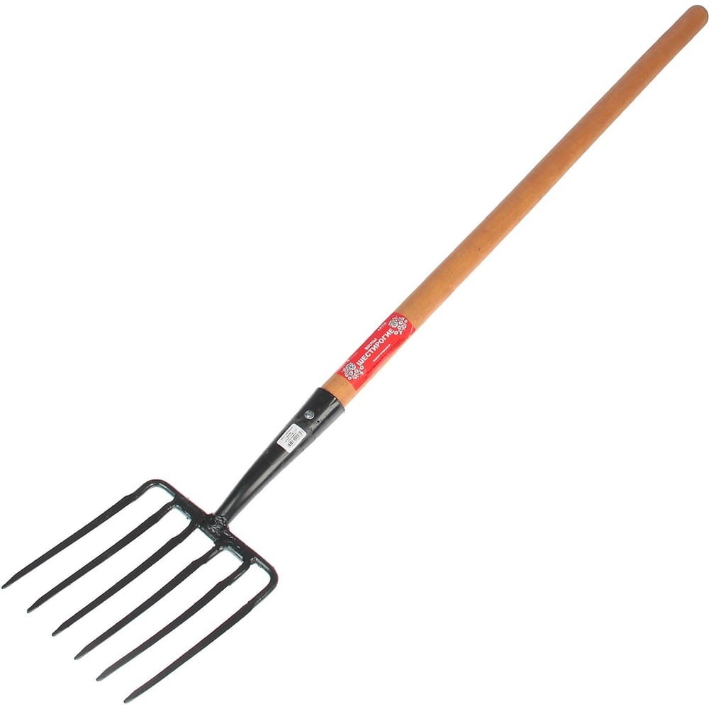 Садовые кованые 6-рогие вилы с черенком Greengo ВС 3340816 используются для работ на частном участке: рыхления почвы, пересадки растений и переноса сена. Рабочая часть из стали отличается высокой прочностью. Для удобства работы предусмотрен деревянный черенок. Дополнительные характеристики: Длина зубьев: 200 мм.