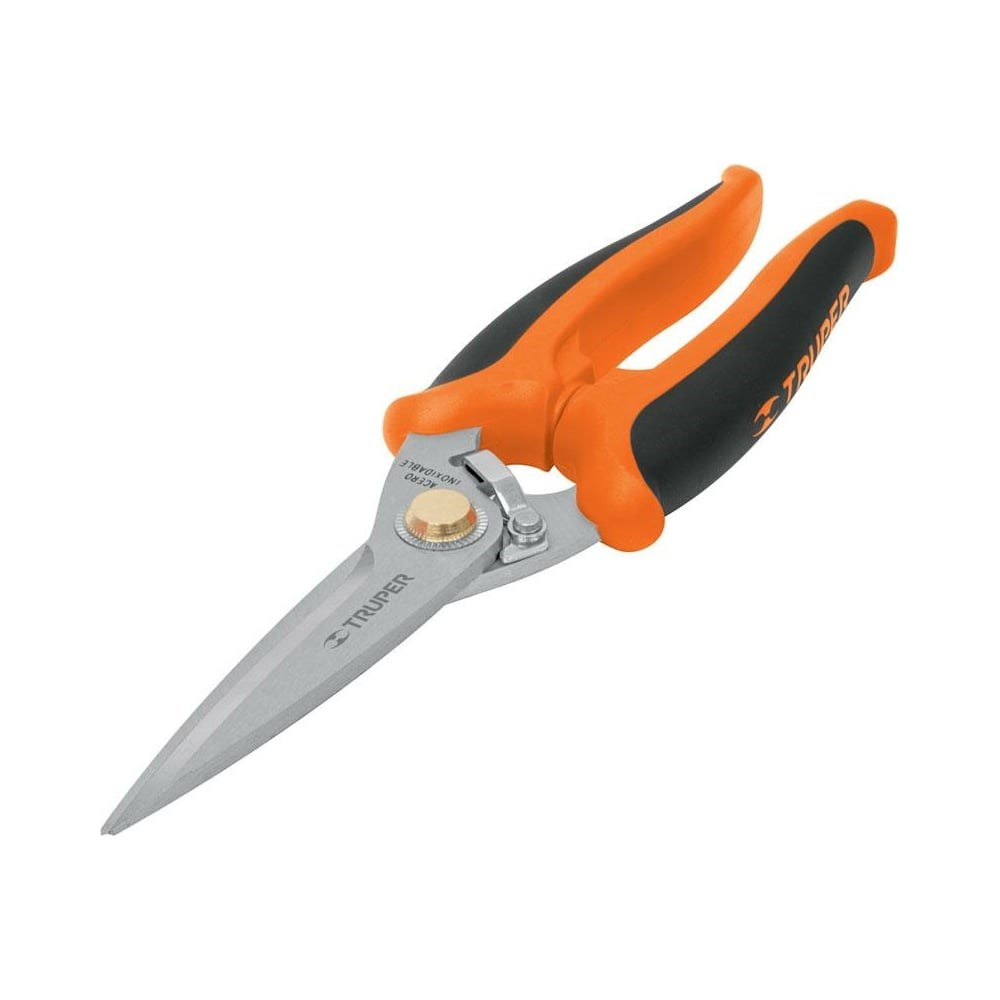 Садовые ножницы TRUPER 8" ТIMU-8 18493 представляют собой инструмент с удлиненными лезвиями для проведения различных работ на садовом участке, например, подрезания тонких веток, цветов, зелени и т.п. Лезвия изготовлены из нержавеющей стали. Ножницы обладают двухкомпонентными рукоятками и фиксатором лезвий для безопасного и удобного хранения.