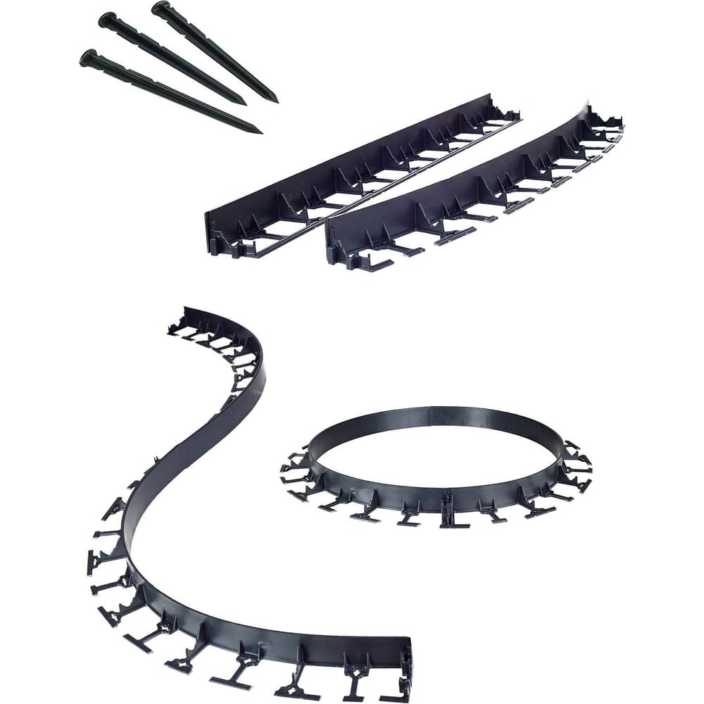 Гибкий садовый пластиковый бордюр ГеоПластБорд усиленный высота 78мм, комплект 8 метров, 32 крепёжных колышка. Цвет черный. Бордюр садовый пластиковый применяют для обрамления парковых дорожек, укрепления краев плитки, формирования ограждения клумб, ограждение для грядок, цветников, создания альпийских горок, для разделения газона с мульчей, в качестве ограждения для сада и огорода, ограждение для клумбы. Изготовлен из полипропилена высшего качества со специальными пластификаторами и UV стабилизатором, что делает его долговечным, пластичным, солнце и морозостойким. Применяйте бордюрный разделитель для укрепления краёв брусчатки клинкера гранита, отмостки без использования бетонного ограждения. При помощи садовые бордюры легко сделать зонирование и садовый декор дачного участка своими руками. Так же пластиковый бордюр используют как ограждения для цветов, ограда для клумбы, садовые ограждение для кустов. Выдерживает большие нагрузки, напр. наезд автомобиля. Прослужит более 10-ти лет. Температурный режим эксплуатации от -60 С до +80 С. Секции бордюра скрепляются между собой надежными торцевыми замками в единую конструкцию любой длины. Без дополнительного нагрева из гибкий бордюр для газона формируются изгибы и круги любого радиуса, даже из одной метровой секции, удобно формировать приствольный круг. Для формирования изгибов, надрежьте перемычки на горизонтальной части бордюра с помощью кусачек или садовых ножниц и прибейте ограждение к земле кольями.