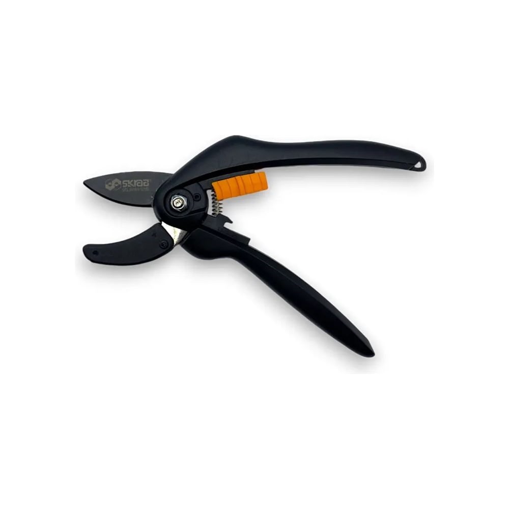 Садовые секаторы контактные SKRAB 28586 незаменимы на загородном участке при подрезке жестких, сухих кустарников и веток. Лезвия секатора выполнены из углеродистой японской стали марки SK5, отличающейся особой прочностью и долговечностью. Верхнее лезвие имеет тефлоновое антикоррозийное покрытие и благодаря специальной заточке верхнего лезвия выполняется быстрый аккуратный рез, не повреждающий кору растения. Лезвие имеет продолжительный срок эксплуатации и долго остается острым, в последствии, поддается заточке. Контрлезвие (наковалёнка) имеет дополнительную пластмассовую накладку поддерживающую ветку.