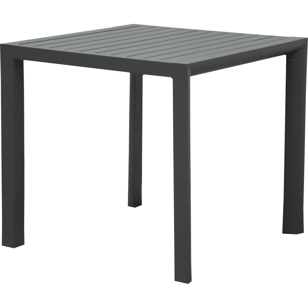 Прямоугольный стол современного дизайна из алюминия с матовым порошковым покрытием цвета антрацит. Может эксплуатироваться как на открытом воздухе таки в помещении. Хорошо впишется в любой интерьер и станет отличным дополнением загородного дома, террасы или зоны отдыха. Прочный и легкий алюминиевый каркас стола вы обязательно оцените при эксплуатации. Стол может быть дополнен стульями или креслами из этой же коллекции. Размер: 80х80 мм.