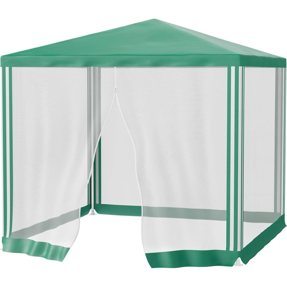 Садовый тент Palisad Camping 69520 размером 250 х 250/240 см с 4 сторон закрыт москитной сеткой, поэтому надежно защищает не только от солнца, но и от насекомых и пуха. Позволяет организовать комфортный отдых на дачном участке или во время пикника.