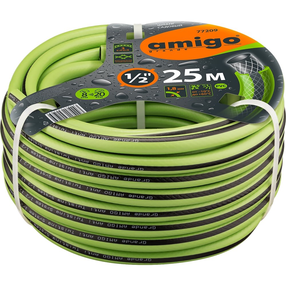 Садовый трехслойный шланг AMIGO 1/2", 25 м 77209 предназначен для полива, а так же для перекачки и прочих работ с жидкостями, в том числе с пищевыми.Имеет следующие достоинства:Европейская технологияПВХ высокой прочностиДиагональное армирование полиамидными нитямиСтабильная формаВысокое сопротивление скручиванию и перегибамТолщина стенки 1,8 ммТемпературный режим эксплуатации от -10 до +60 градусовРабочее давление 8 – 20 атм