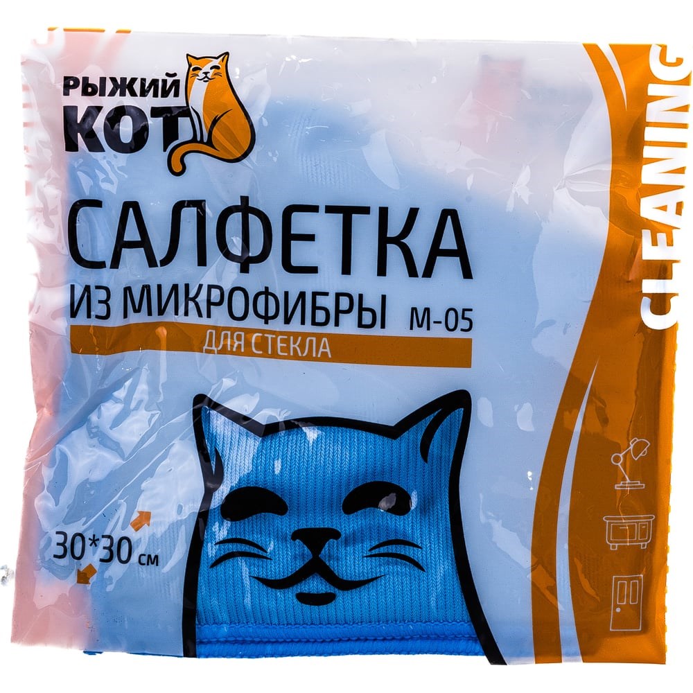 Салфетка из микрофибры для стекла Рыжий кот M-05 голубая, 30х30 см 310211