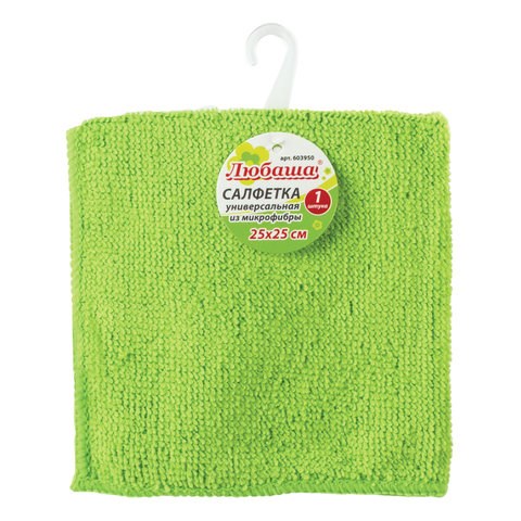 Салфетка из МИКРОФИБРЫ универсальная 25х25 см, зеленая, 180 г/м2, ЛЮБАША ЭКОНОМ, 603950