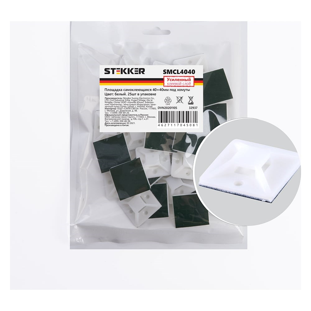 Самоклеящаяся площадка STEKKER 40х40 мм, под хомуты, белый, SMCL4040 32937