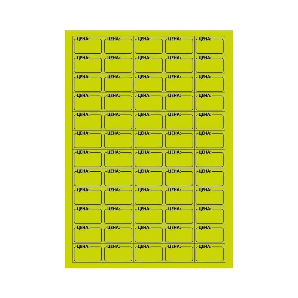 Бумажные наклейки "Цена" с самоклеящейся основой предназначены для предназначены для нанесения информации о цене на товар. Цвет наклейки - желтый. Размер одной наклейки 38х23,5 мм. Плотность бумаги 70 г/м2. Размер листа с 60 наклейками: А4. Упаковка: картонная папка, 1200 шт. наклеек (20 листов по 60 наклеек). Наклейки производятся с акриловым клеем высокого качества, приклеиваются на бумагу, картон, пластик и др. поверхности. Рабочий температурный диапазон от - 20 до 60 градусов. Информация на самоклеящийся ценник наносится вручную маркером, ручкой или фломастером