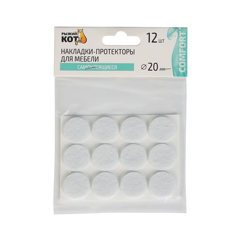 Самоклеящиеся накладки-протекторы для мебели Рыжий кот 12 шт., 20 мм, белый 105203 предназначены для защиты полов из любого покрытия от сколов, царапин, потертостей, делает мебель более устойчивой.