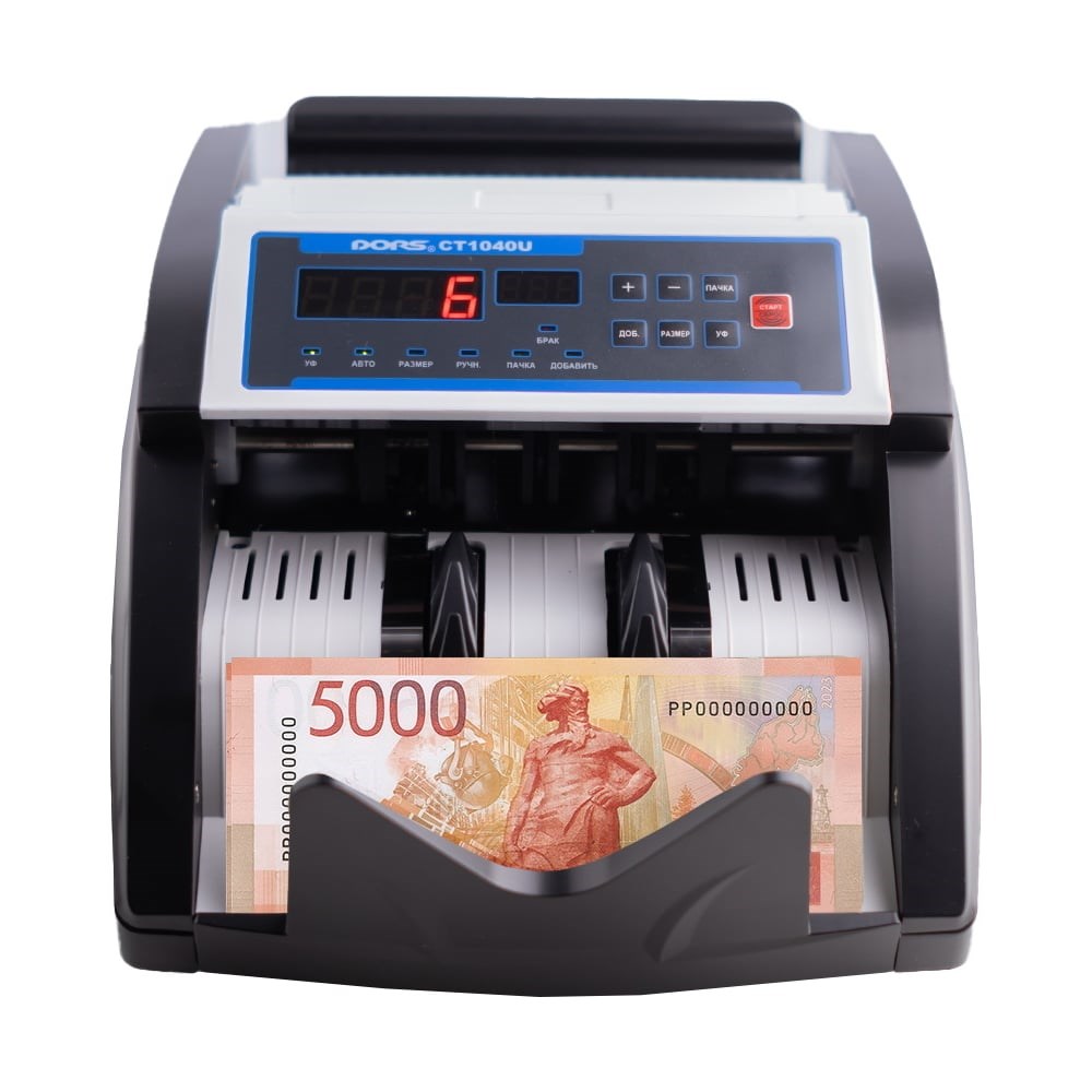 Счетчик банкнот DORS CT 1040U SYS-039183 позволяет пересчитывать банкноты различных валют. Рекомендуется для пересчета однородной по номиналу денежной массы в местах с небольшим и средним оборотом наличных средств. Адаптирован к работе с новыми банкнотами 100, 200 и 2000 рублей Бережный пересчет банкнот различной степени изношенности Остановка пересчета и вывод на дисплей кода ошибки при обнаружении цепочки банкнот, сдвоенных, слипшихся, замятых, банкнот с большим отсутствующим фрагментом Пересчет банкнот с одновременной проверкой геометрических размеров Жидкокристаллический контрастный дисплей с подсветкой Удобная ручка для переноса счетчика Пересчет банкнот с одновременной проверкой подлинности по УФ и МГ защитным признакам Режим суммирования результатов пересчета позволяет просчитать любой объем однородной по номиналу денежной массы Режим отсчета пачки банкнот заданного размера позволяет сформировать корешок (100 банкнот) одного номинала. Режим удобен при выдаче заранее известной суммы: кассир выставляет на счетчике необходимое количество банкнот, после чего помещает в приемный карман любое количество имеющихся банкнот данного номинала. Если пересчитанных банкнот недостаточно, прибор автоматически продолжит формирование пачки заданного количества Режим ручного начала пересчета позволяет контролировать начало пересчета банкнот: у кассира есть возможность без спешки ровно уложить банкноты