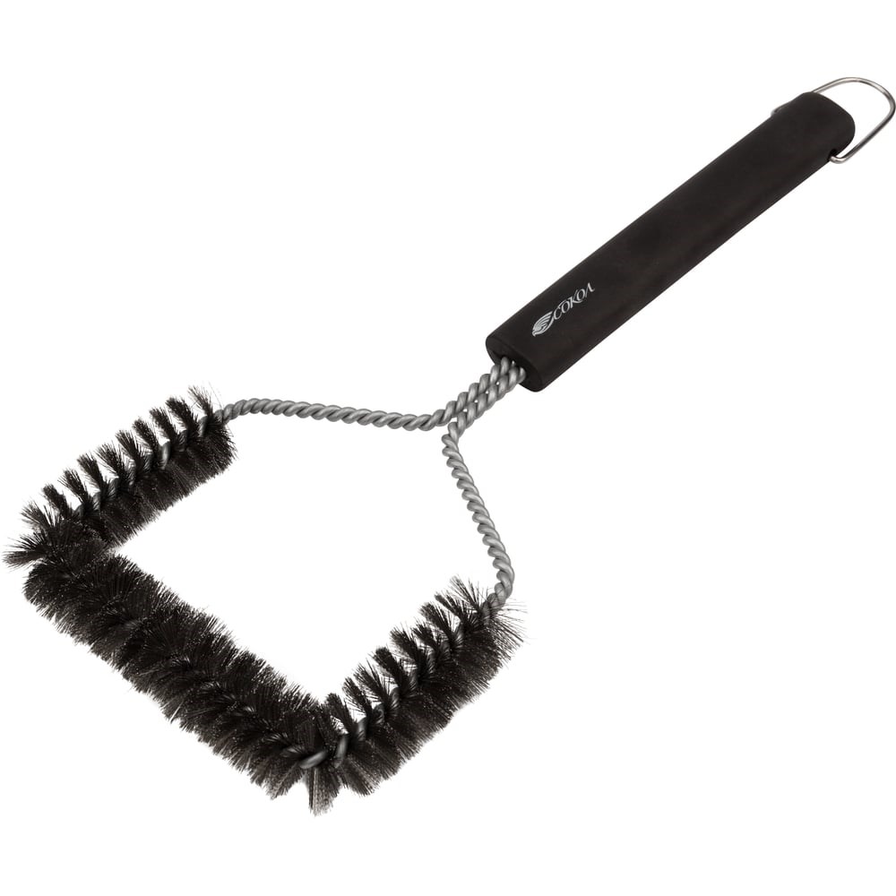 Щетка для грилей серии Комфорт предназначена для очищения грилей, мангалов и решеток из нержавеющей стали, чугуна, хрома или фарфоровой эмали. Длинная рукоятка из экологически чистой термопластичной резины не выскальзывает из рук. Жесткая металлическая щетина эффективно удаляет остатки пригоревшей пищи и другие сильные загрязнения. Способна вычищать мелкий сор и грязь даже из труднодоступных мест. Аксессуар выполнен из прочной и экологичной нержавеющей стали, благодаря чему выдерживает большие перепады температур, устойчив к коррозии.