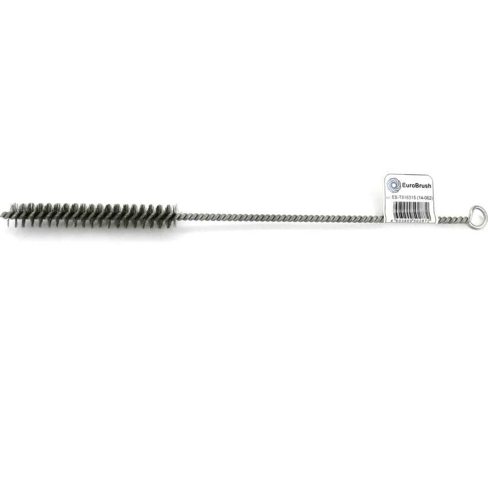 Щетки ерши диаметром от 4 до 25 мм с ручкой и кольцом, ворс из нержавеющей стальной проволоки, длина рабочая 100 мм, общая длина 300 мм, применяются для очистки цилиндрических поверхностей из нержавеющей стали, сплавов алюминия, отверстий, прочистки трубок, шлангов, удаления заусенцев и подобных работ. Наименование краткое: Щетка ерш Д15 мм нерж сталь для очистки отверстий трубок шлангов Модель: (код 14-062) Назначение: Очистка Обрабатываемый материал: Нержавеющая сталь / Алюминий Электроинструменты / станки: Вручную Диаметр D, Д (мм): 15 Размер A, E (мм): 100 Размер T, S (мм): 5 Материал ворса щетки: Сталь нержавеющая Диаметр ворса (мм): 0,15 Тип (форма) ворса: Гофрированный (волнистый) Производитель: EuroBrush Страна: Китай