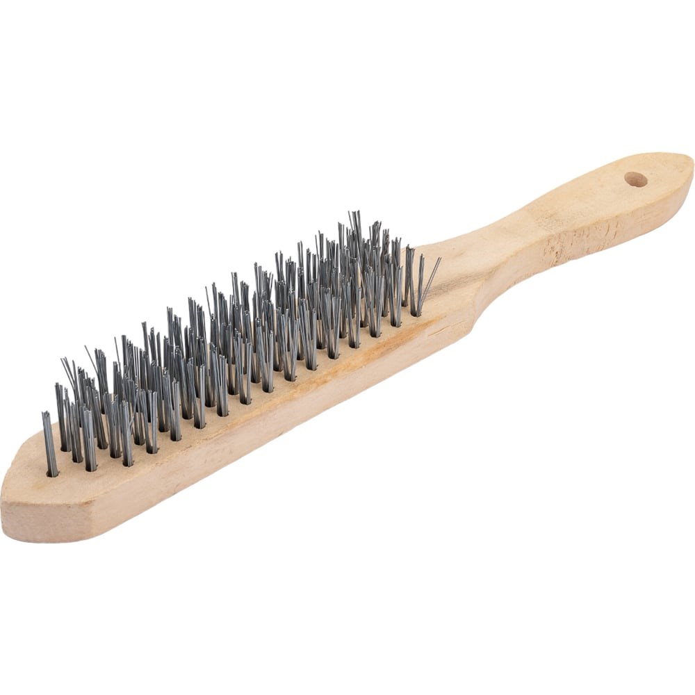 Применяется для очистки деревянных, металлических и других поверхностей от старых лакокрасочных покрытий, ржавчины, налета и других загрязнений. Материал проволоки: сталь; Материал ручки: дерево; Количество рядов: 5.