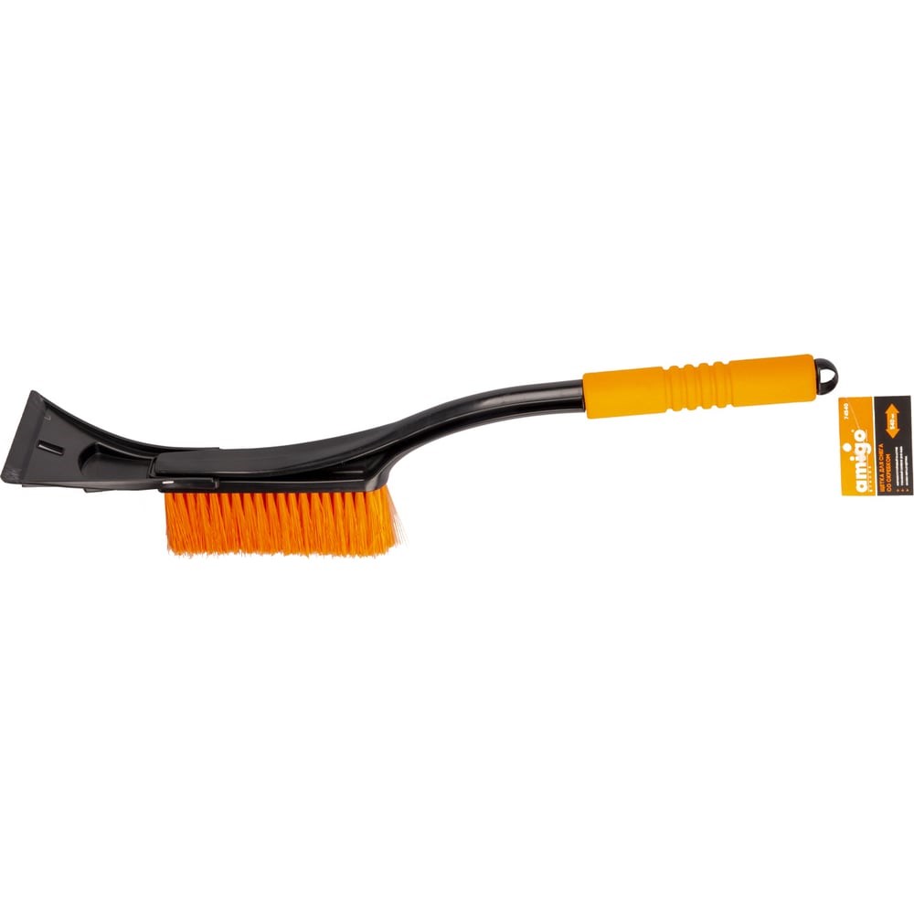 Щетка-сметка для уборки снега Amigo 540 мм, черный 74540 черный 74500 позволяет легко очистить ледяную корку со стекол автомобиля, образующуюся в морозные дни. Дополнительные характеристики: Съемный скребок Легкий и прочный корпус Морозоустойчивый пластик Длина: 540 мм Длина щетины: 160 мм Скребок: 105 мм