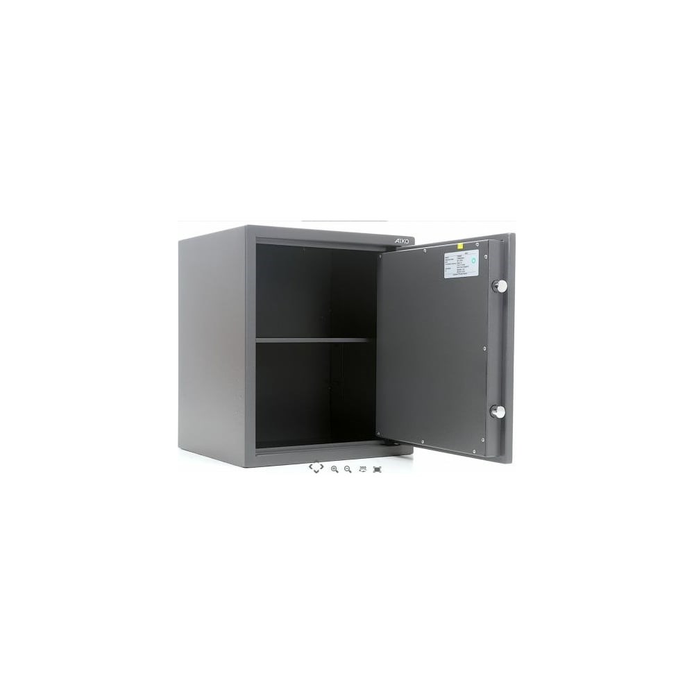 Сейф AIKO TSN 50 S10399530014 предназначен для хранения документов и прочих ценностей. Прочный стальной корпус и толстая дверь устойчивы к механическим повреждениям. Данная модель изготовлена в соответствии с ГОСТ Р 55148-2012 и относится к классу взломостойкости S1. Порошковое покрытие надежно защищает корпус от коррозии.