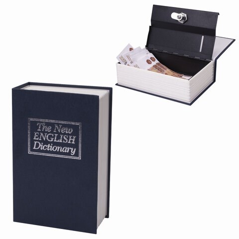 Сейф-книга "Английский словарь", 54х115х180 мм, ключевой замок, темно-синий, BRAUBERG, 291179