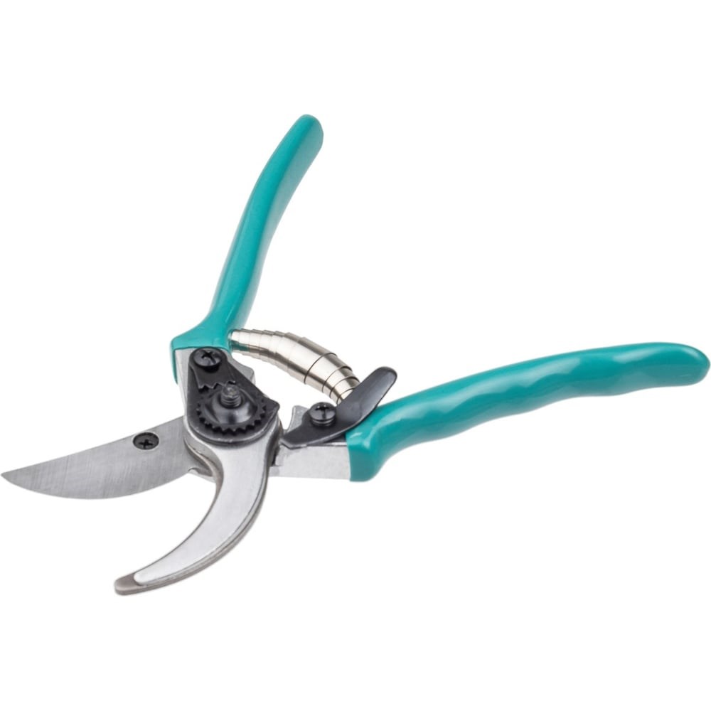 Предназначен для срезания живых веток. За счет прямого реза (режущее лезвие заходит за опорное, отсекая ветку) исключается замятие ветки и растение теряет минимум сока. Лезвия секатора изготовлены из среднеуглеродистой стали. Режущее лезвие закалено и покрыто тефлоном, что обеспечивает легкий рез древесины. Изогнутое опорное лезвие надежно удерживает ветку во время реза. Винтовое крепление лезвий позволяет регулировать плотность их смыкания. Литые алюминиевые рукоятки надежны в работе, ПВХ-покрытие исключает выскальзывание инструмента с руки. Максимальный диаметр реза - 15 мм.