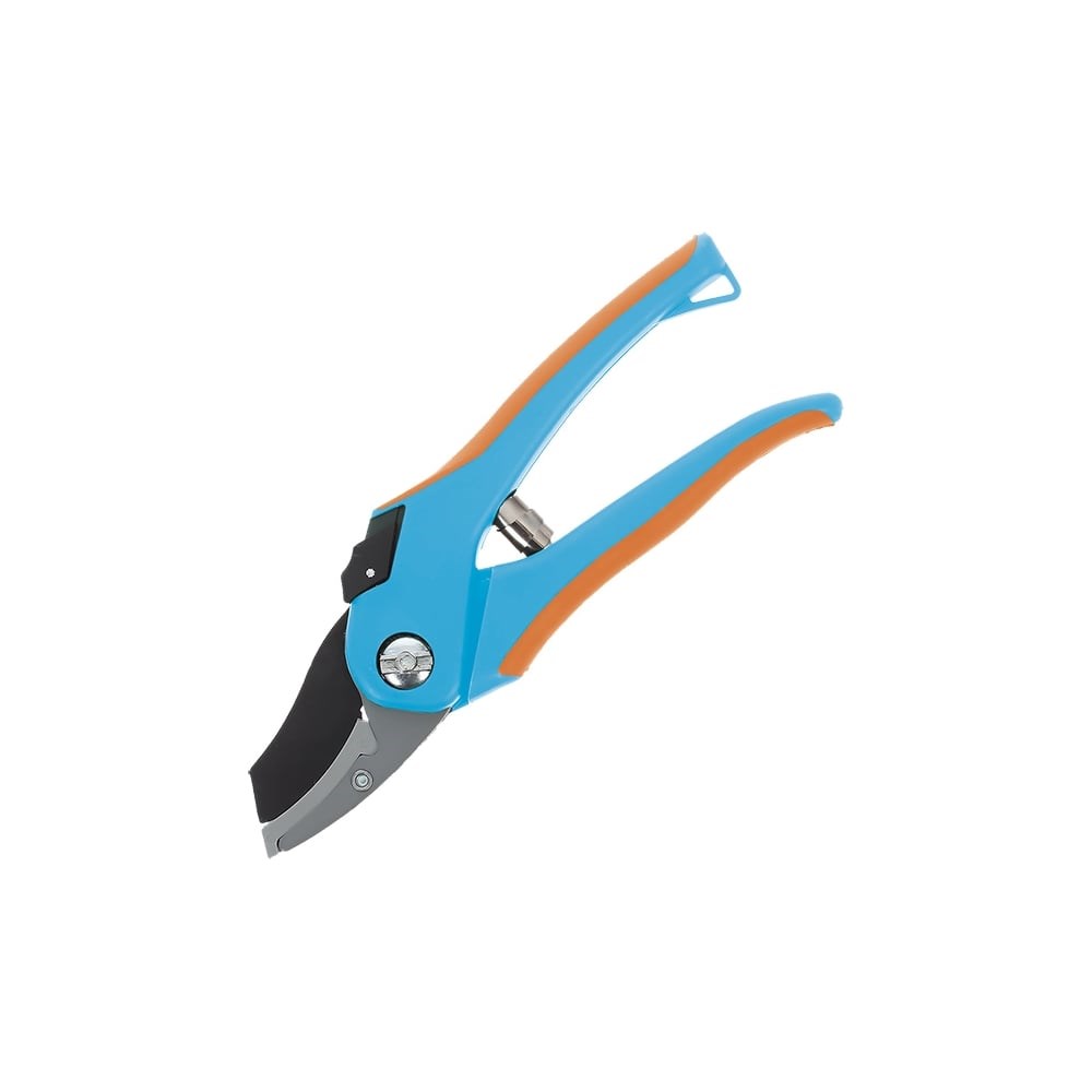 Секатор используется для ухода за садовыми кустарниками и цветами. Эргономичные, двухкомпонентные рукоятки обеспечивают надежный хват. Наличие фиксатора позволяет безопасно хранить и переносить секатор.