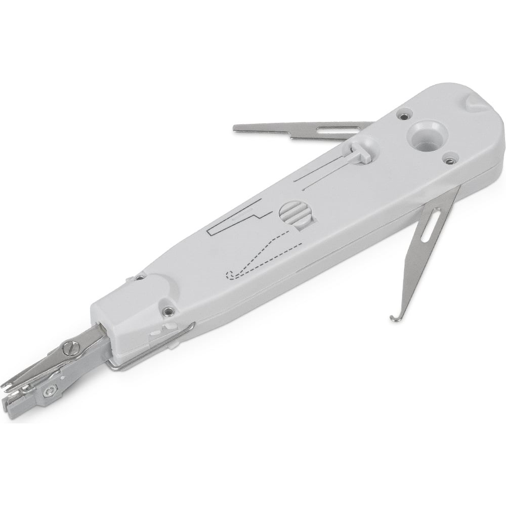 Инструмент предназначен для заделки проводников в контакты плинтов типа Krone (LSA-Plus), а также подходит для контактов Dual IDC (110/Krone) на патч-панелях, без применения пайки, винтового соединения или необходимости снятия изоляции. Монтажный инструмент обеспечивает газонепроницаемый контакт, пригоден для подключения жил диаметром 0,35...0,9 мм и диаметром по изоляции 0,65...2,6 мм. При подключении второй жилы к контакту, сенсорное устройство можно отключить. Ножницы могут быть отключены для обеспечения возможности подключения жилы к соседнему контакту (шлейф, петля). Усредненная износостойкость для диаметра жилы 0,4 мм - 200 000 подключений.