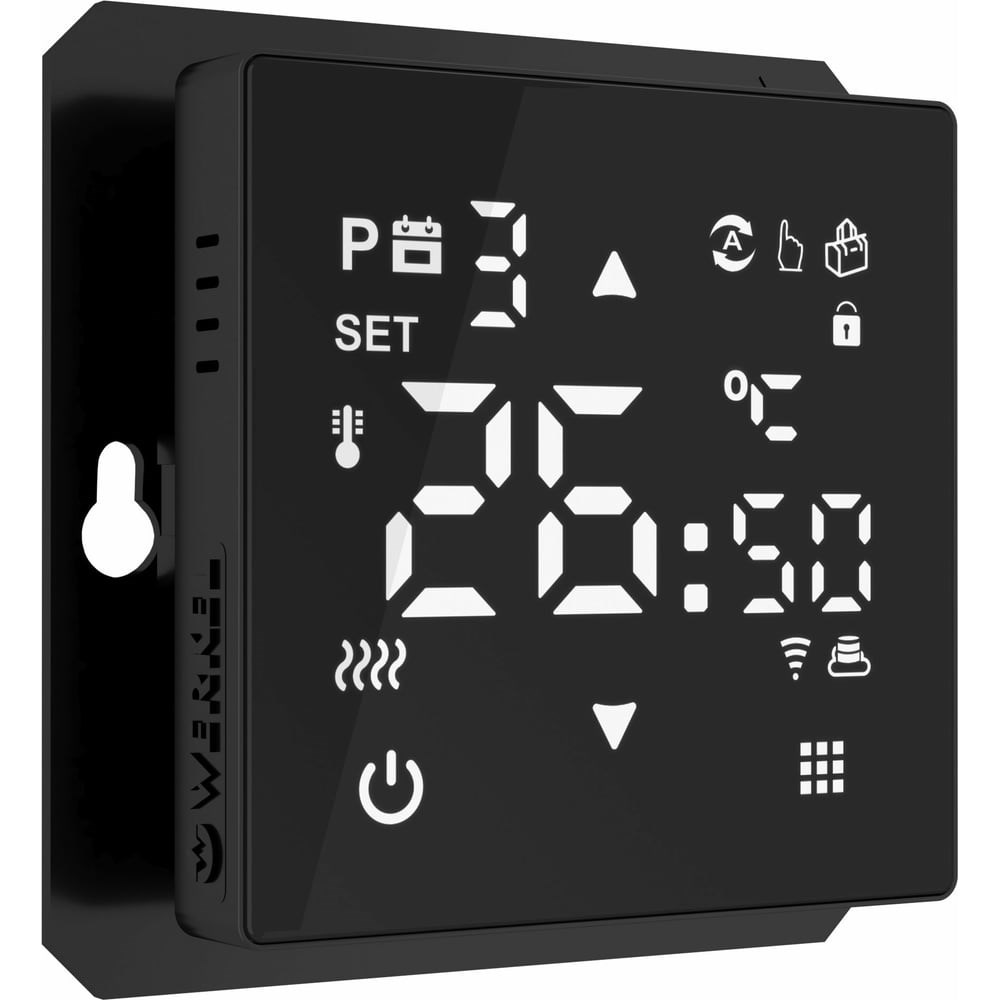 Умный сенсорный терморегулятор Werkel W1151208 - это современное и функциональное устройство, которое станет незаменимым помощником в создании комфортной атмосферы в вашем доме.Терморегулятор предназначен для регулировки температуры поверхности пола в помещениях. Он работает со всеми типами теплых полов, включая электрические, инфракрасные и водяные.Управление терморегулятором осуществляется при помощи смартфона или голосовых помощников Алисы и Маруси. В бесплатном приложении Minimir Home легко программировать сценарии работы устройства. В настройках предусмотрена блокировка сенсорной панели от случайного нажатия.Диапазон регулировки температуры от +5 до +35°C с точностью до 0,5 градуса.Все встраиваемые механизмы Werkel комбинируются с любыми рамками Werkel. Насчитывается более 1000 комбинаций разного цвета и фактуры, идеально подходящих под любой интерьер. Рамки приобретаются отдельно. Рамки из матового стекла: Senso - 5 цветов, 1 - 4 поста, код a064572 Рамки из стекла: Elite - 5 цветов, 1 - 4 поста, код a057874 Favorit - 10 цветов, 1 - 5 поста, код a051290 Рамки из стекла зеркальные: Diamant - 3 цвета, 1 - 5 поста, код a051017 Рамки из металла: Platinum – 5 цветов, 1 - 4 поста, код a059210 AluMax – 3 цвета, 1 - 4 поста, код a066329 Рамки из металла/акрила: Baguette – 3 цвета, 1 - 4 поста, код a060239 Рамки из поликарбоната: Split – 2 цвета, 1 - 4 поста, код a067251 Slab – 5 цветов, 1 - 5 поста, код a062793