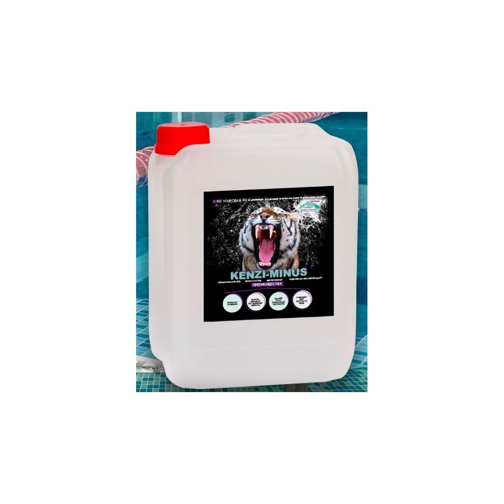 Средство для бассейна KENAZ КЕНЗИ-МИНУС сернокислый, понижение pH воды, регулятор, для воды с повышенным ph, 10 л 226283 для понижения кислотно-щелочного баланса воды в бассейне до оптимального уровня (7.2-7.6). Перед тем как приступить к дезинфекции воды бассейна (борьбой с водорослями, мутью, ржавой водой) необходимо довести показатели уровня рН до нормы. Средство снижает уровень pH, восстанавливает растворенные металлы и удаляет соли карбонатной жесткости в воде: кальций, магний. Инструкция: Добавляется KENZI-MINUS сернокислый в воду бассейна с помощью автоматических станций дозирования или ручным способом. Дозировка для понижения значения рН воды на 0,1 единицу: 0,1 л препарата на 10 м3 воды. При ручной дозировке препарат предварительно развести в чистой пластиковой емкости с водой. Препарат добавляется в воду, а не наоборот! Полученный раствор вылить по периметру бассейна вдали от форсунок, скиммеров, других элементов оборудования бассейна. Не рекомендуется допускать людей к купанию в течении 30 минут после ручного добавления препарата в воду. Для поддержания оптимальных значений рН - необходимо контролировать уровень рН воды. После регулировки уровня рН используйте средства для бассейна: KENARIT, KENZIOZON, KENIFLOK, KENAZIN НЕПЕНЯЩИЙСЯ, сухую химию для бассейна KENAZ. Уровень PH воды в бассейне важная составляющая водоподготовки воды бассейна.