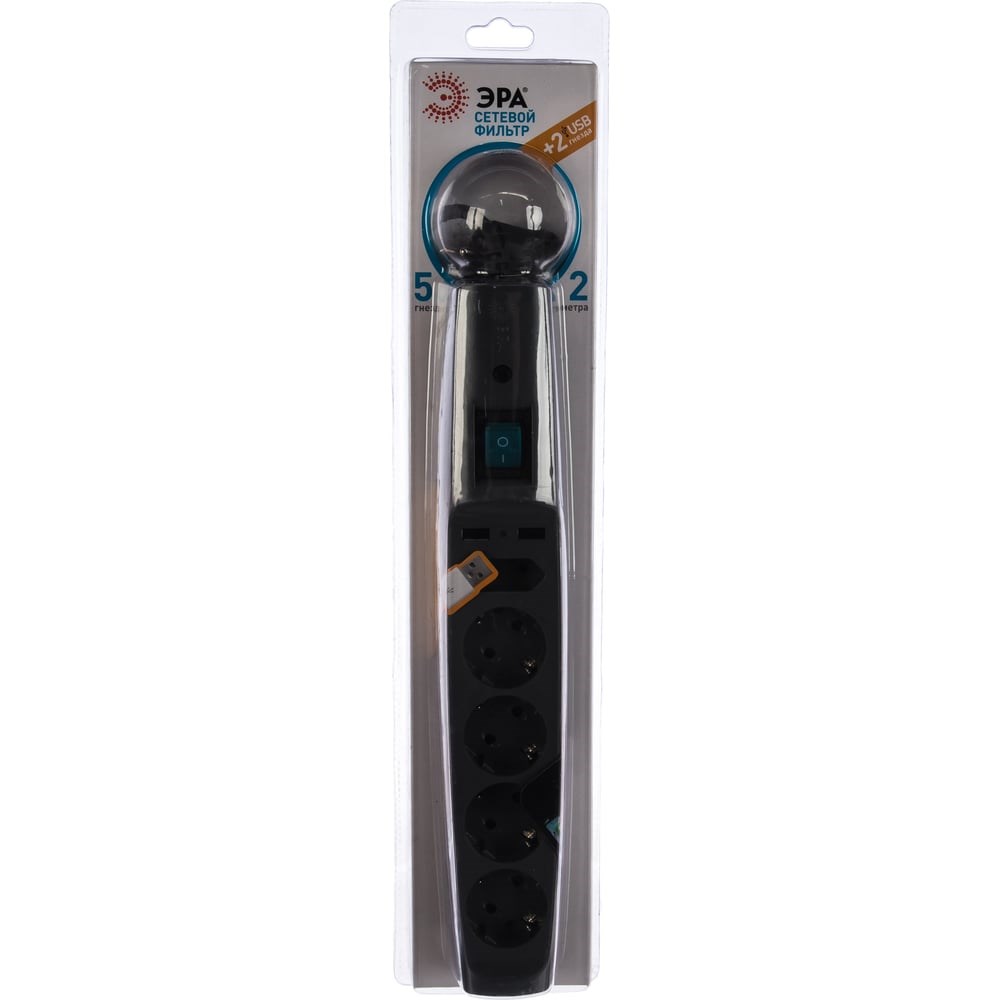 Сетевой фильтр 5 розеток, 2 USB, 2м, с/з, шторками и выключателем, черный, SFU-5es-2m-B ЭРА C0043326 отличается многофункциональностью, что делает его необходимым атрибутом современного дома. Сетевой фильтр имеет шнур длиной 2м, такой удлинитель оптимальный для использования в пределах одной комнаты. Для большего удобства он имеет выключатель. Сетевой фильтр ЭРА имеет 4 розетки классической круглой формы, узкое гнездо для зарядных устройств, 2 USB-порта с напряжением 2.1 А, что обеспечивает быструю зарядку мобильных устройств. Сетевые фильтры ЭРА разрабатываются собственным техническим бюро, проходит проверку на всех этапах производства, что обеспечивает высокое качество продукта.