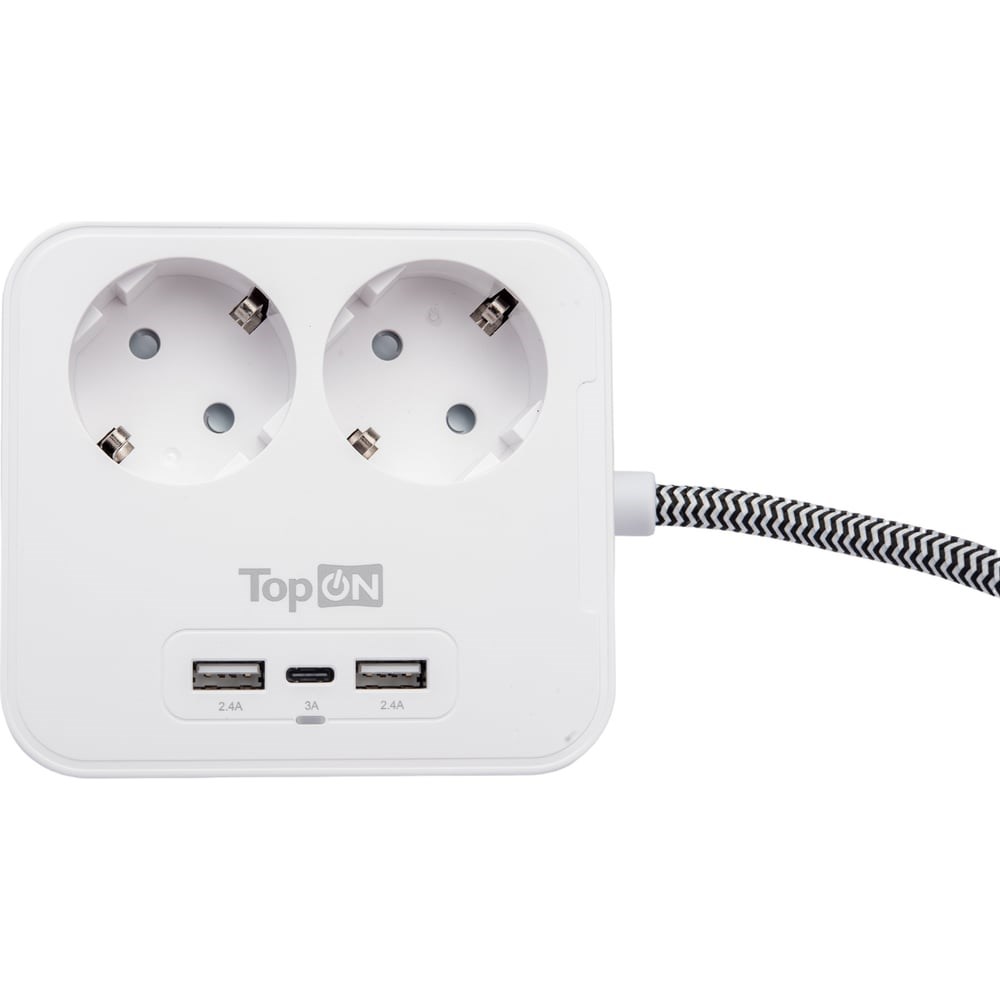 Сетевой фильтр TopOn на 2 розетки с 2 USB-A и USB-C, 4000W, 1.5 м Белый TOP-PWS2 предназначен для организации пространства дома, в офисе, гараже или мастерской. TOP-PWS2 имеет 2 розетки, 2 USB порта и USB Type-C, благодаря чему можно одновременно подключить 5 электрических устройств, расположив их в удобном месте.