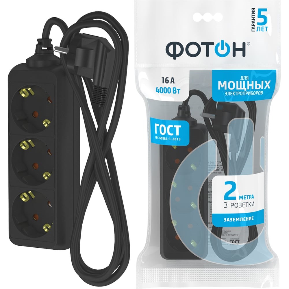 Удлинители С ЗАЗЕМЛЕНИЕМ рассчитаны на одновременное подключение приборов суммарной мощностью до 4000 Вт (номинальный ток - 16А). Провод 3х0,1мм (квадратных) - сечение проводника 0,1 мм (квадратных).Латунная контактная группа обеспечивает высокую электропроводность и максимально плотный контакт со штырями вилки подключаемых приборов. Корпус изготовлен из термоустойчивого и ударопрочного ABS-пластика. Все удлинители ФОТОН предназначены для подключения к розеткам европейского стандарта.* Отсутствие искрения* Электро- пожаробезопасностьЗащитный бортик высотой 12 мм исключает риски поражения электрическим током при случайном попадании пальца в зазор между вилкой и гнездовым разъемом.Вся продукция полностью соответствуют нормам российского ГОСТ и EAC. Все удлинители ФОТОН проходят двойной контроль качества и работоспособности.