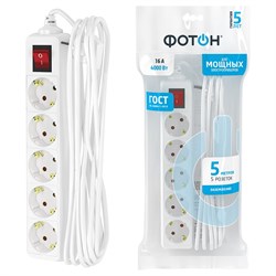 Удлинители C ЗАЗЕМЛЕНИЕМ рассчитаны на одновременное подключение приборов суммарной мощностью до 4000 Вт (номинальный ток - 16А). Они снабжены защитными шторками, прикрывающими контакты, для обеспечения дополнительной безопасности. Провод 3х1,0мм (квадратных) - сечение проводника 1,0 мм (квадратных). Латунная контактная группа обеспечивает высокую электропроводность и максимально плотный контакт со штырями вилки подключаемых приборов. Корпус изготовлен из термоустойчивого и ударопрочного ABS-пластика. Все удлинители ФОТОН предназначены для подключения к розеткам европейского стандарта. * Отсутствие искрения* Электро- пожаробезопасность Защитный бортик высотой 12 мм исключает риски поражения электрическим током при случайном попадании пальца в зазор между вилкой и гнездовым разъемом. Вся продукция полностью соответствуют нормам российского ГОСТ и EAC.