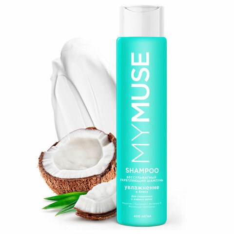 Шампунь бессульфатный 400 мл, MYMUSE укрепляющий для смешанных и жирных волос, 145008
