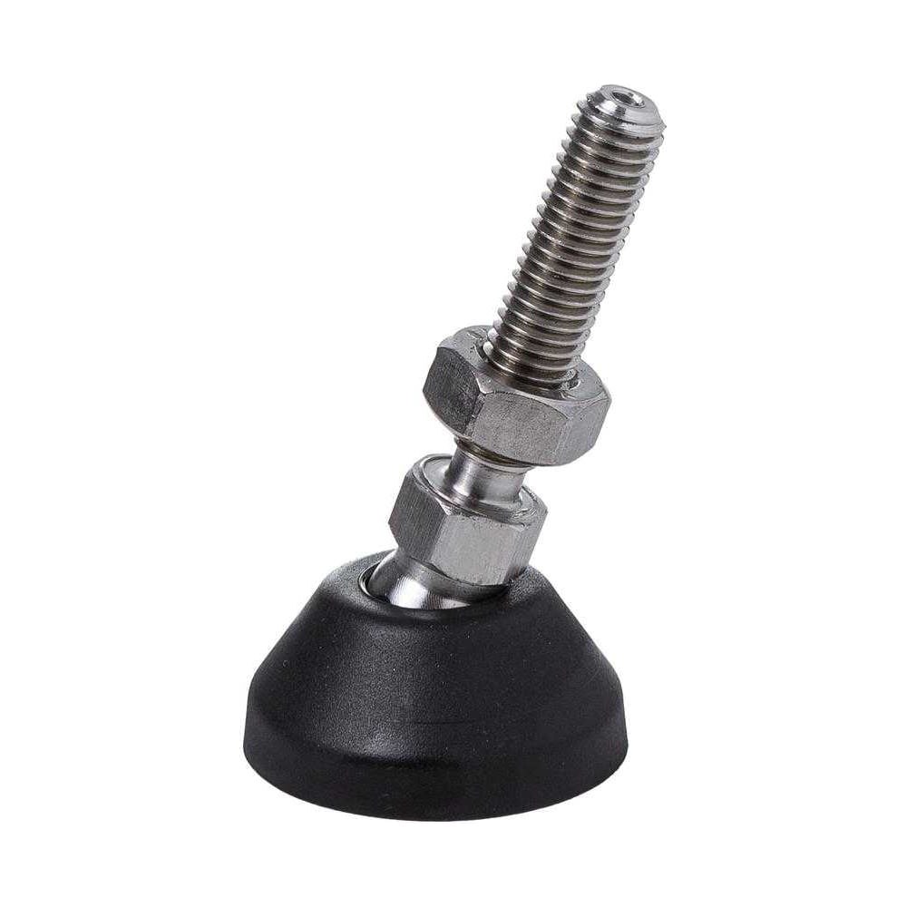 Материалы: Основание литое под давлением из полиамида ПА6-211/2М. Винт из нержавеющей стали AISI304 Исполнение: Полиамид черного цвета. Нержавеющая сталь без покрытия. Максимально допустимая нагрузка: 500 кг. Резьба: M10. Длина резьбы: 45 мм. Горючесть основания: HB (UL-94). Напряжение при разрыве основания: 70-80 МПа (ISO 527,50 мм/мин). Прочность при изгибе основания: 80-92 МПа (ISO 178,2 мм/мин).