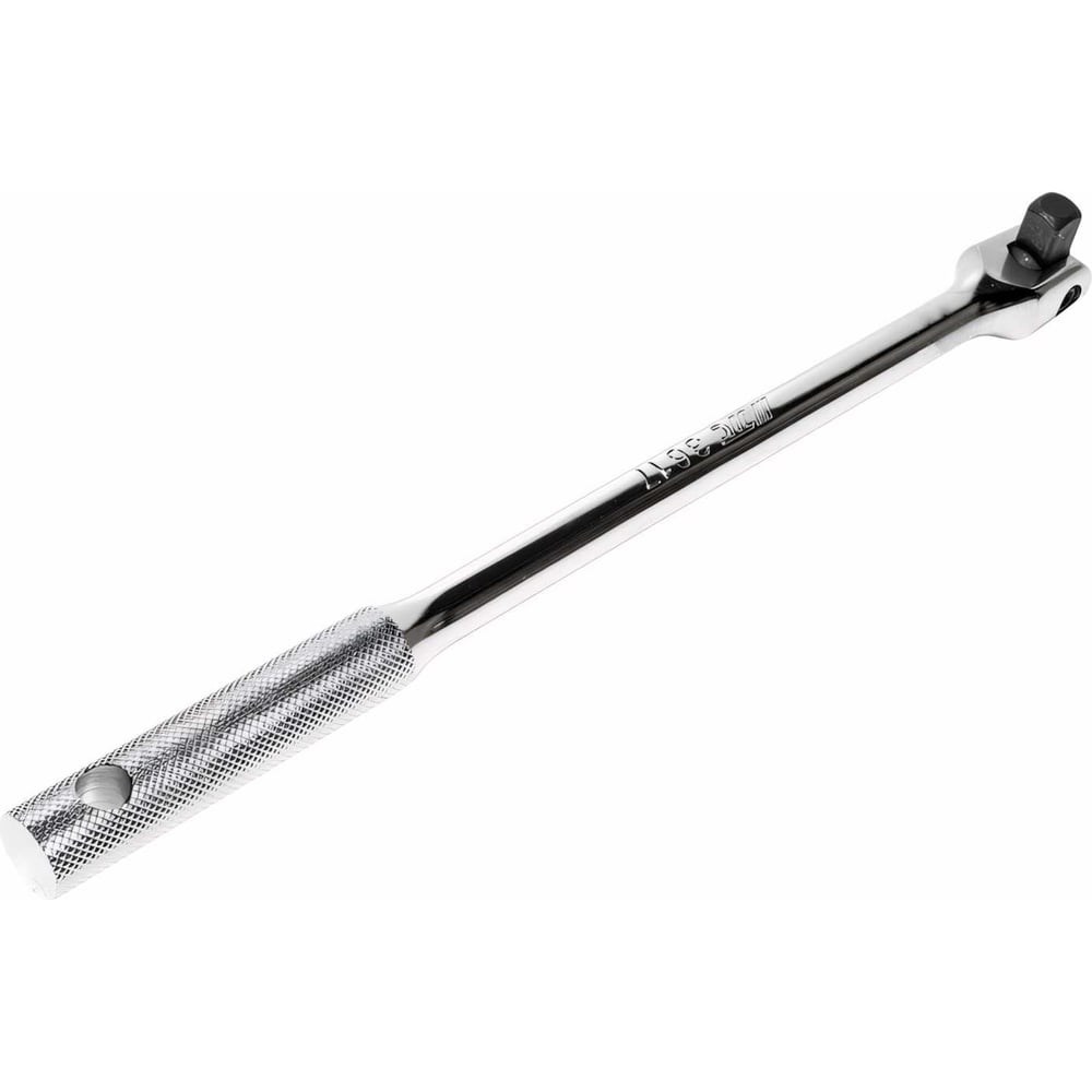 Шарнирный вороток с рукояткой 1/2", длина 380мм JTC-3617 подходит для работы в труднодоступных местах. Головка изготовлена из закаленной стали, рукоятка - из CrV стали, поэтому инструмент обладают стойкостью к нагрузкам и большим рабочим ресурсом. Рукоятка, на поверхности которой имеются насечки, не скользит в руке, обеспечивает комфортную работу. Присоединительный квадрат 1/2". Габариты: 385х80х70 мм.
