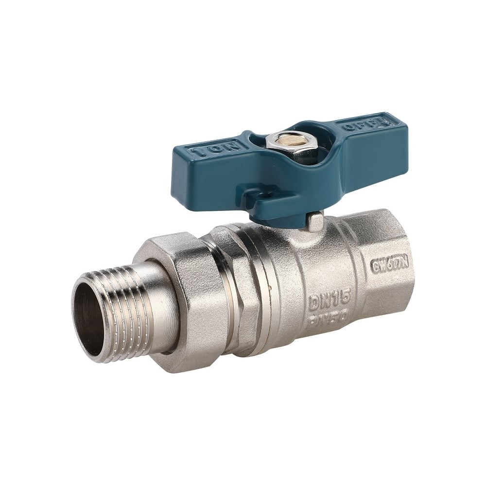 Кран шаровой с полусгоном, с уплотнительным кольцом.Вид: прямой кран;Тип ручки: бабочка;Тип арматуры: запорная;Материал: корпус и шарик выполнены из латуни;Тип резьбы: ¾x¾;Тип присоединения: резьбовой